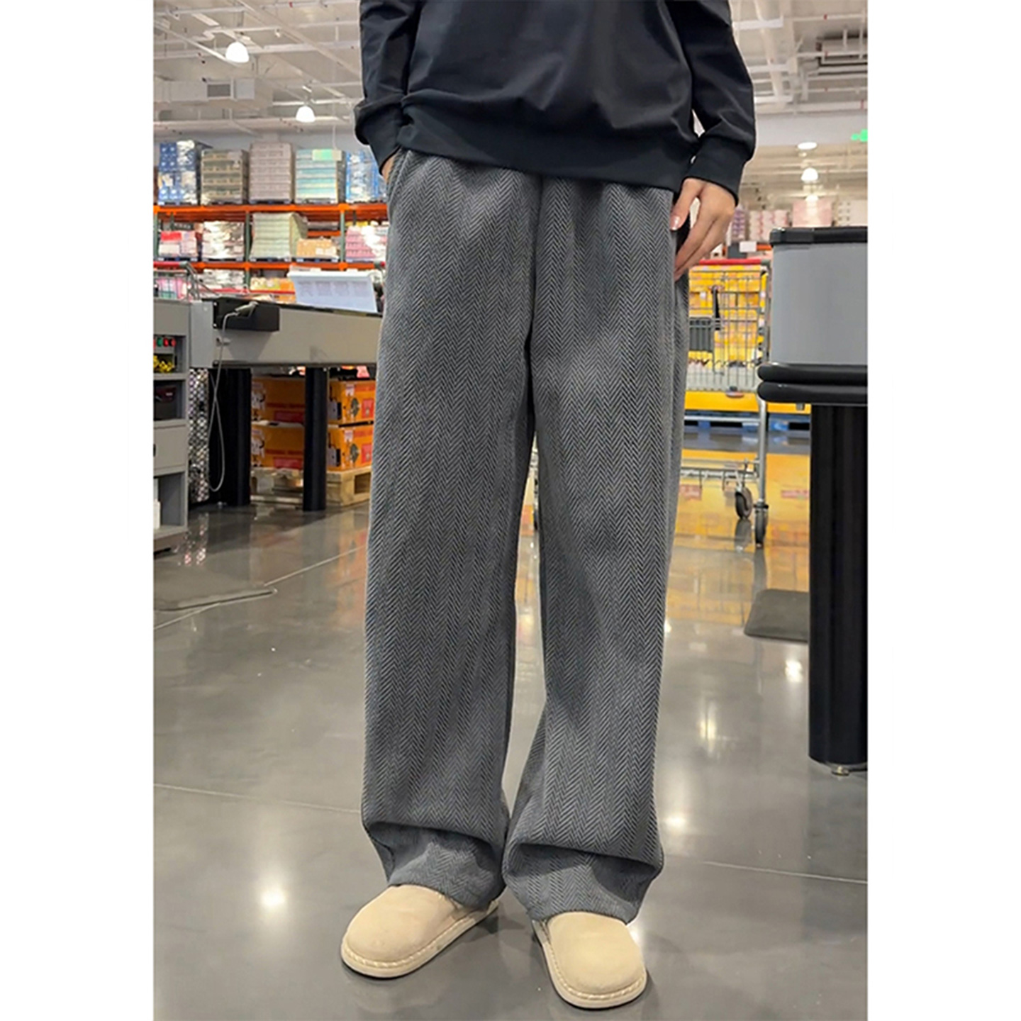 加绒男生阔腿运动长裤 垂感休闲潮牌港风宽松直筒工装 子男秋冬款 裤