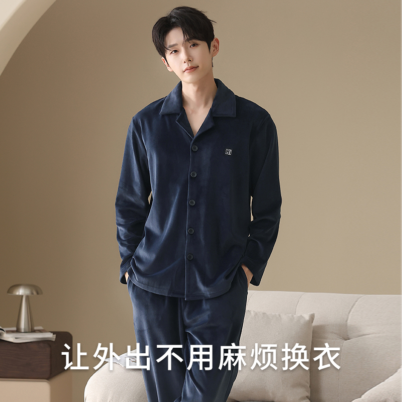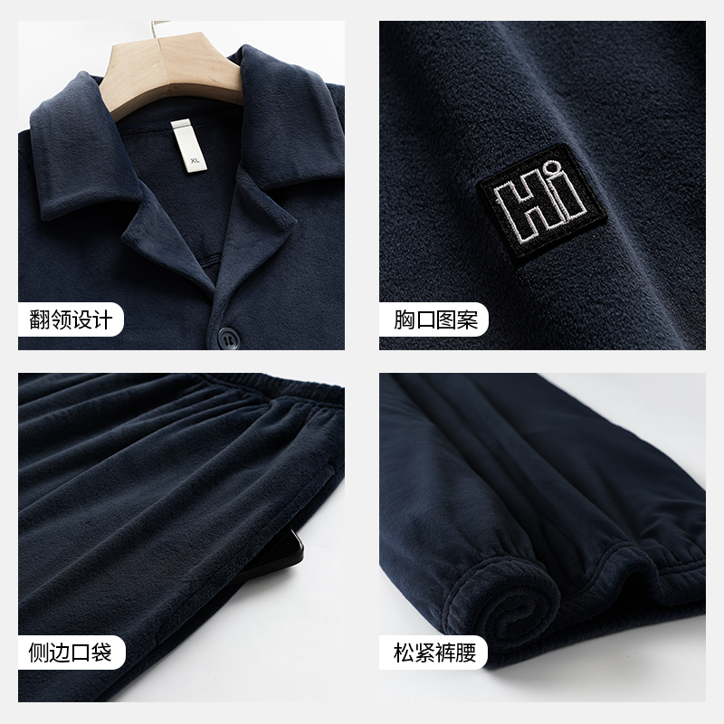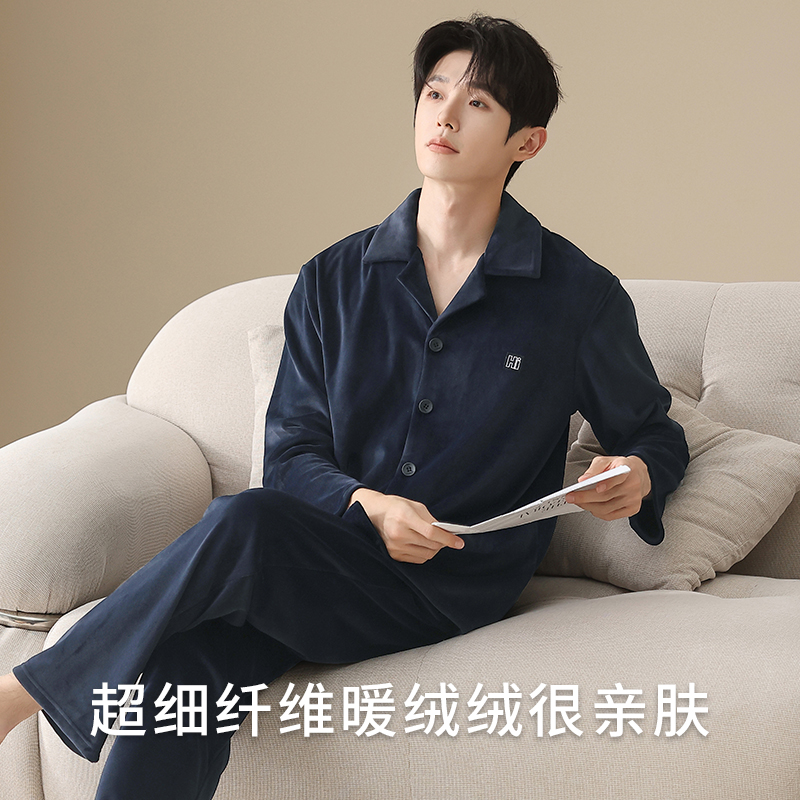 三层夹棉睡衣珊瑚绒加绒加厚法兰绒家居服冬天套装 秋冬季 男士 新款