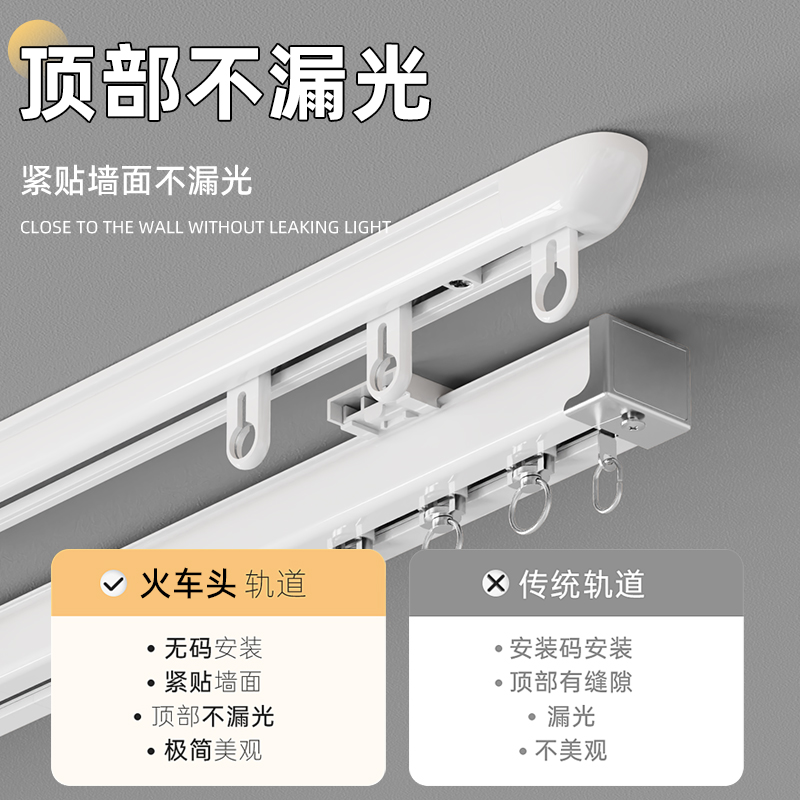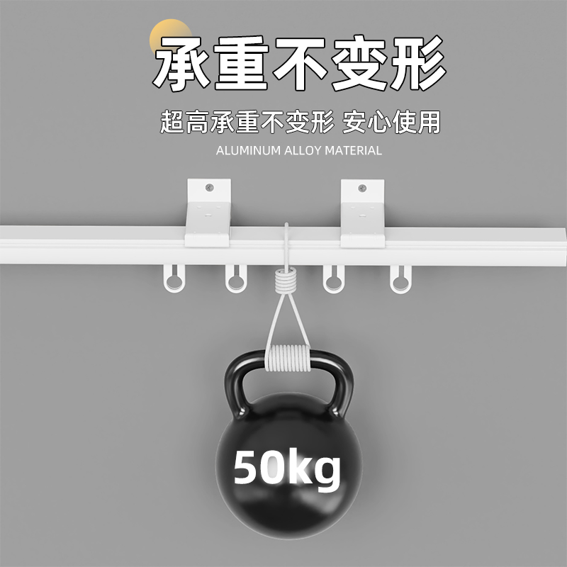 铝合金阳台滑道 顶装 窗帘轨道挂钩式 窗帘杆静音单轨滑轮滑轨侧装