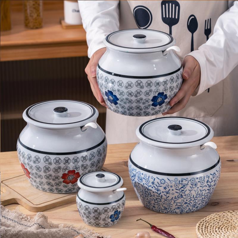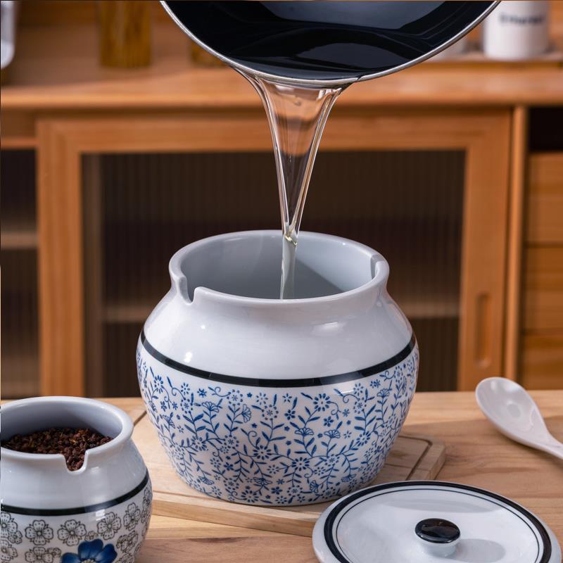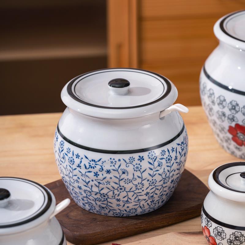 猪油罐陶瓷耐高温加厚大容量辣椒酱罐子家用中式 复古厨房餐厅有盖