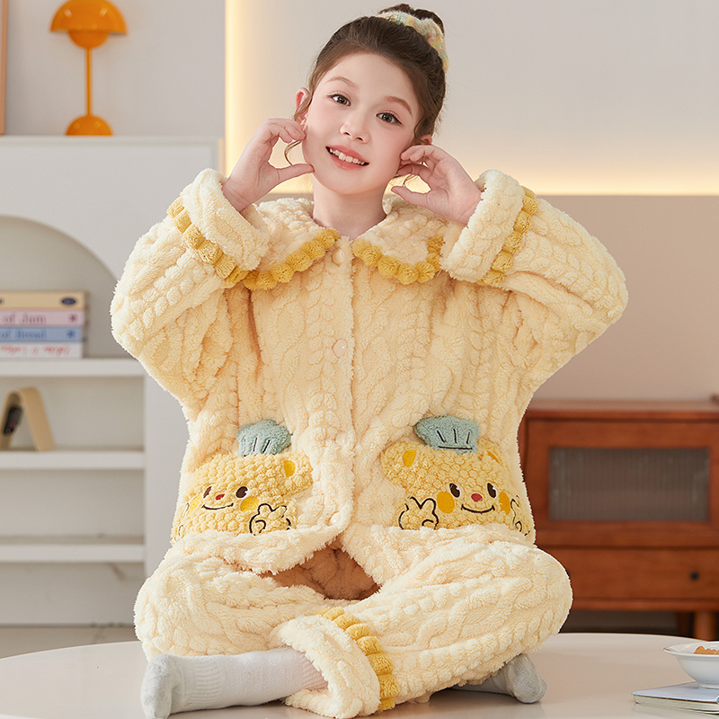 红豆珊瑚绒睡衣女羊羔绒抗静电加厚桂花绒甜美保暖外穿家居服套装