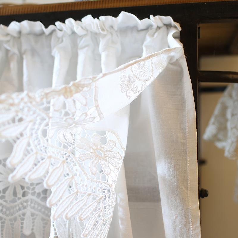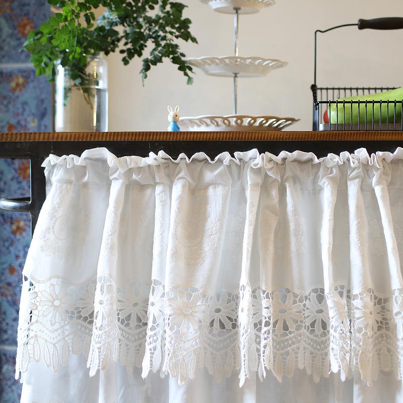 小清新少女蕾丝公主美式 窗帘半帘纯白棉布半帘门帘短帘幔头小窗帘