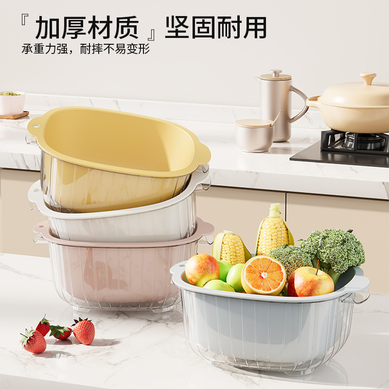 双层洗菜盆沥水篮新款 家用厨房洗菜篮滤水篮洗水果淘菜盆客厅果篮