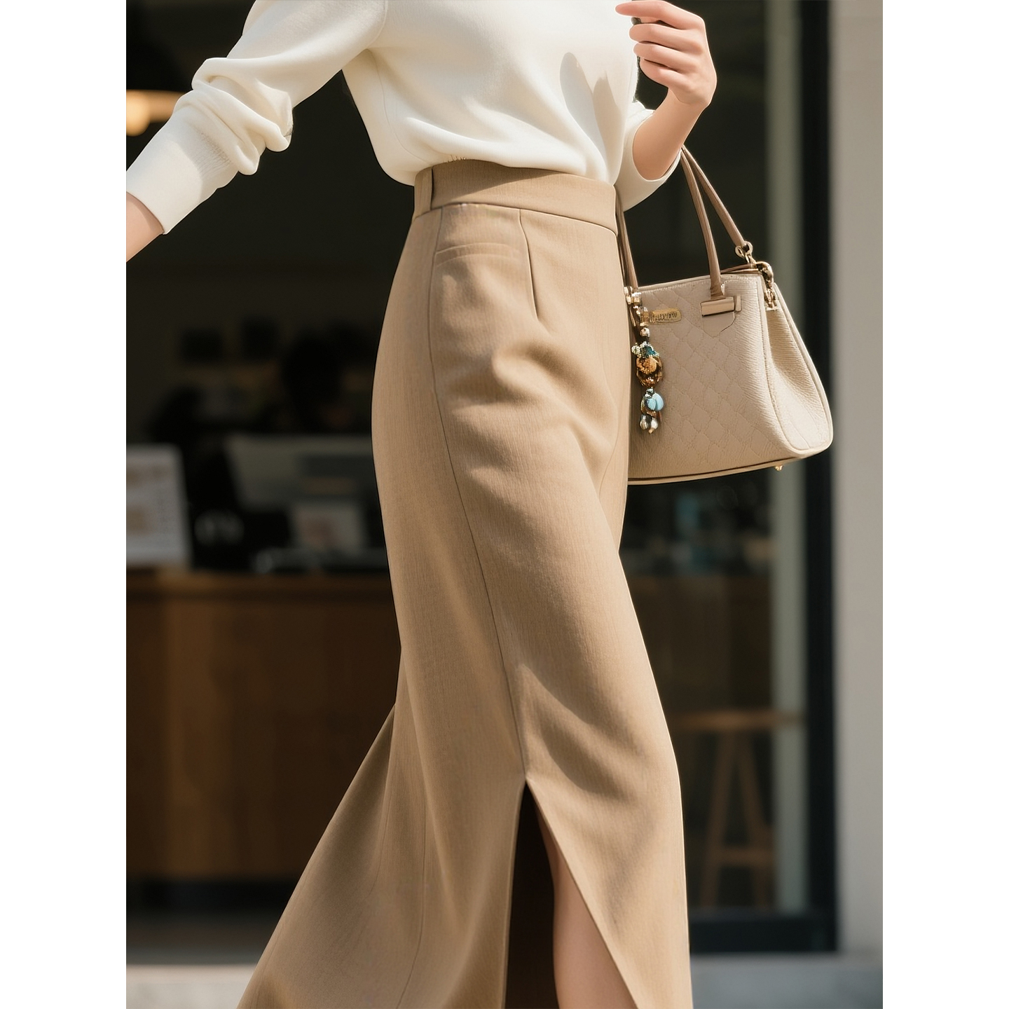 咖色包臀长裙 高级感黑色中长款 毛呢直筒半身裙女春秋冬季 2025新款