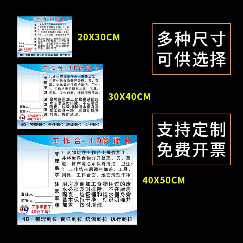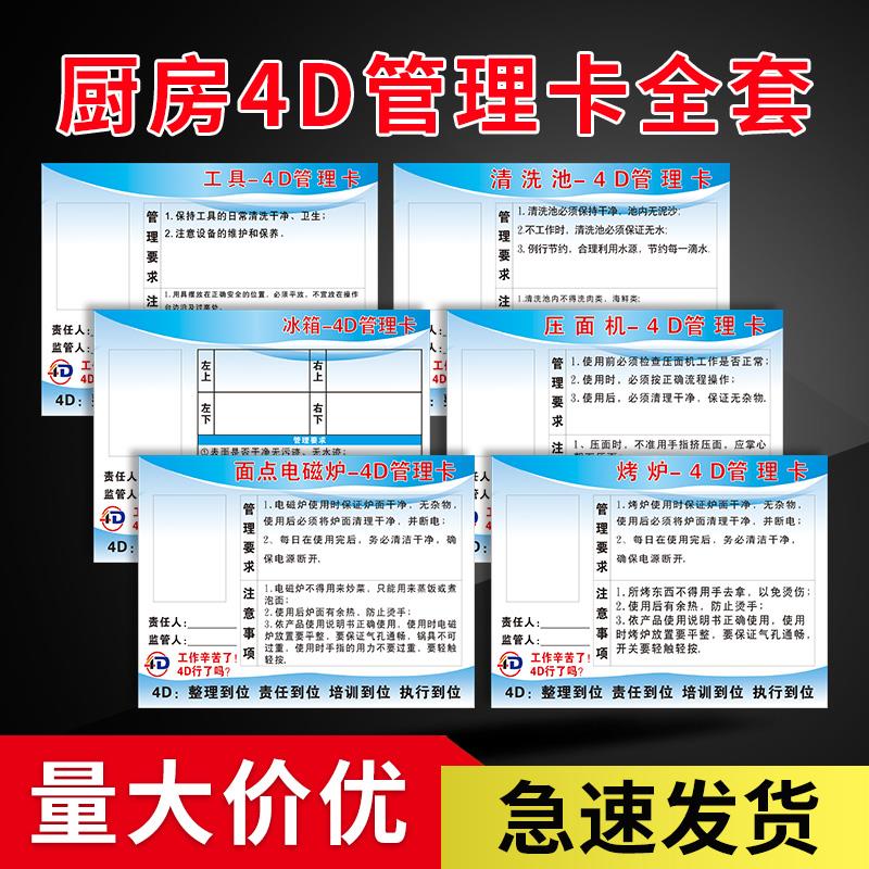中央厨房4D管理卡厨房标准化管理责任卡标识牌信息牌责任人监管人责任区管理要求注意事项岗位部门职责说明牌