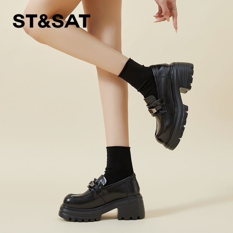 女2025新款 黑色英伦风小皮鞋 秋季 一脚蹬单鞋 女鞋 星期六厚底乐福鞋