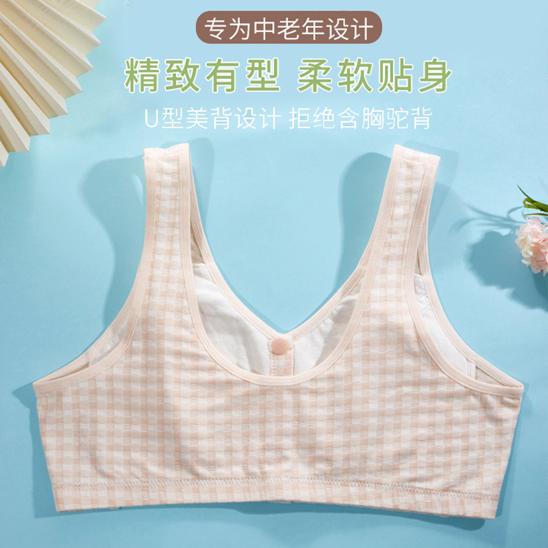 中老年妈妈文胸纯棉内衣女老人中年妇女前扣背心式 无钢圈 胸罩大码