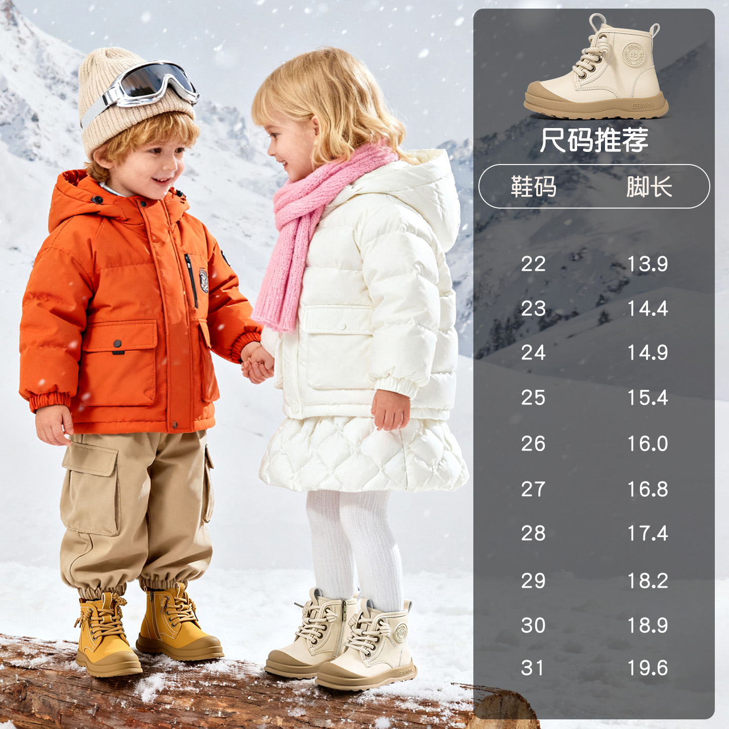 侧拉链中筒鞋 英贝米尼儿童皮靴2025新款 秋冬马丁靴防滑保暖女童鞋