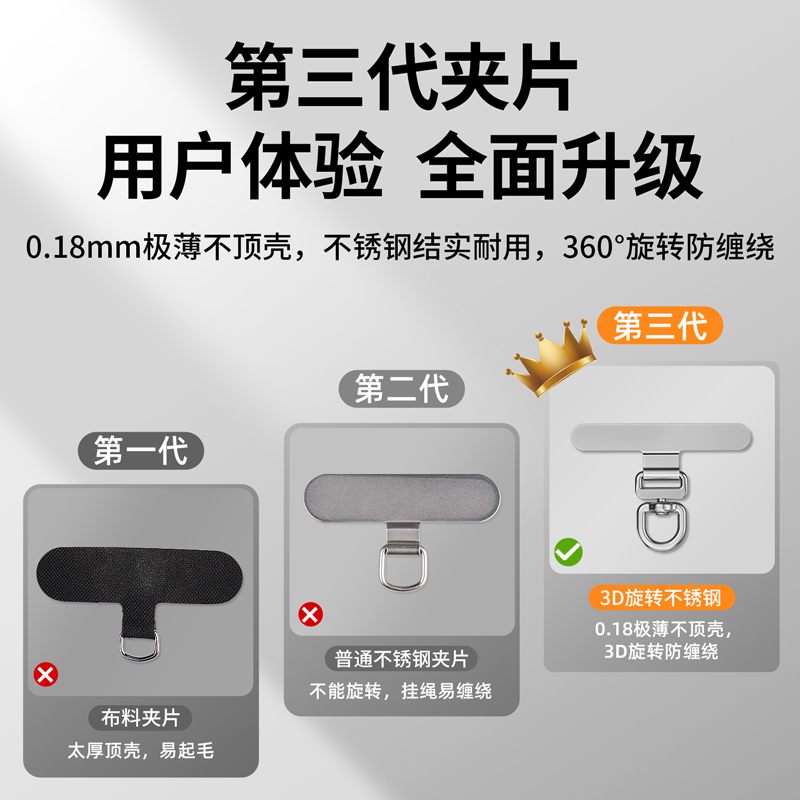 手机挂绳垫片不锈钢金属夹片高端超薄旋转贴片斜挎链手腕固定挂片卡片结实电话挂件防盗壳防盗牢固卡垫连接片