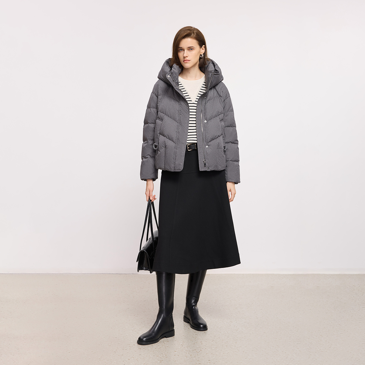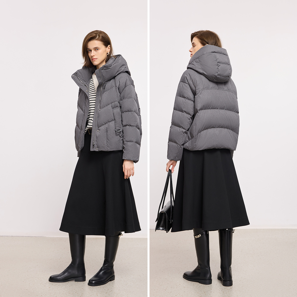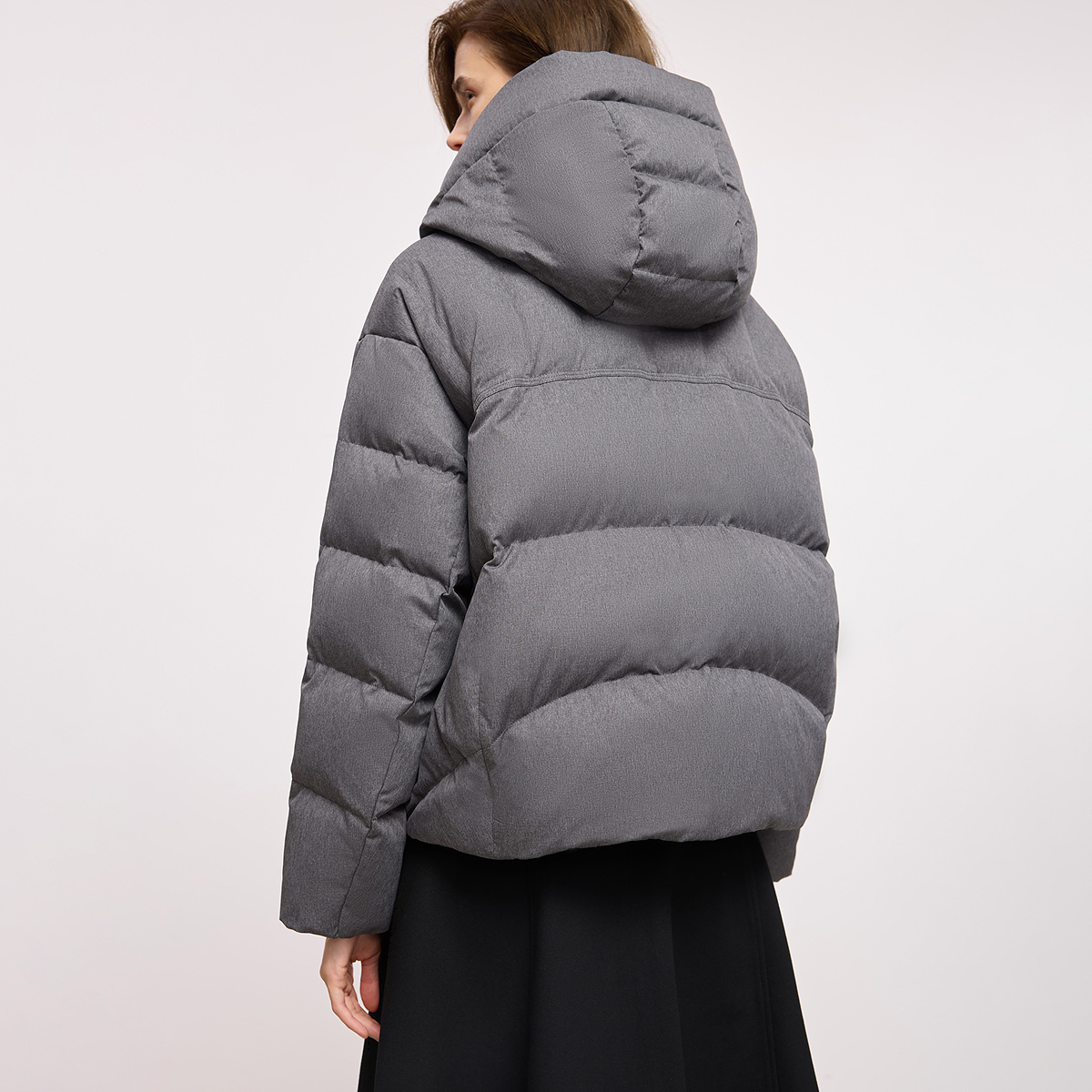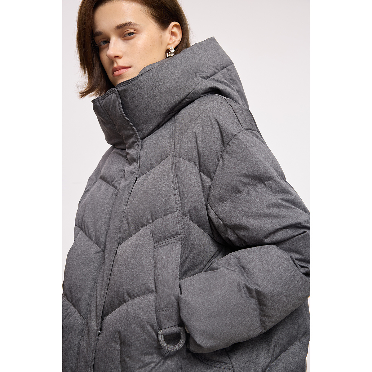 LILY2025冬新款 格雷系连帽90鸭绒宽松灰色茧型面包羽绒服外套 女装
