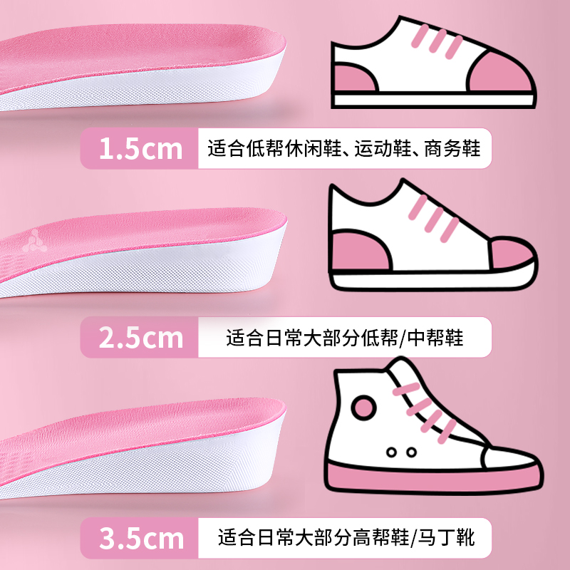 不累脚隐形足弓支撑小个子软底不塌陷防滑2cm 垫女款 老爹鞋 增高鞋