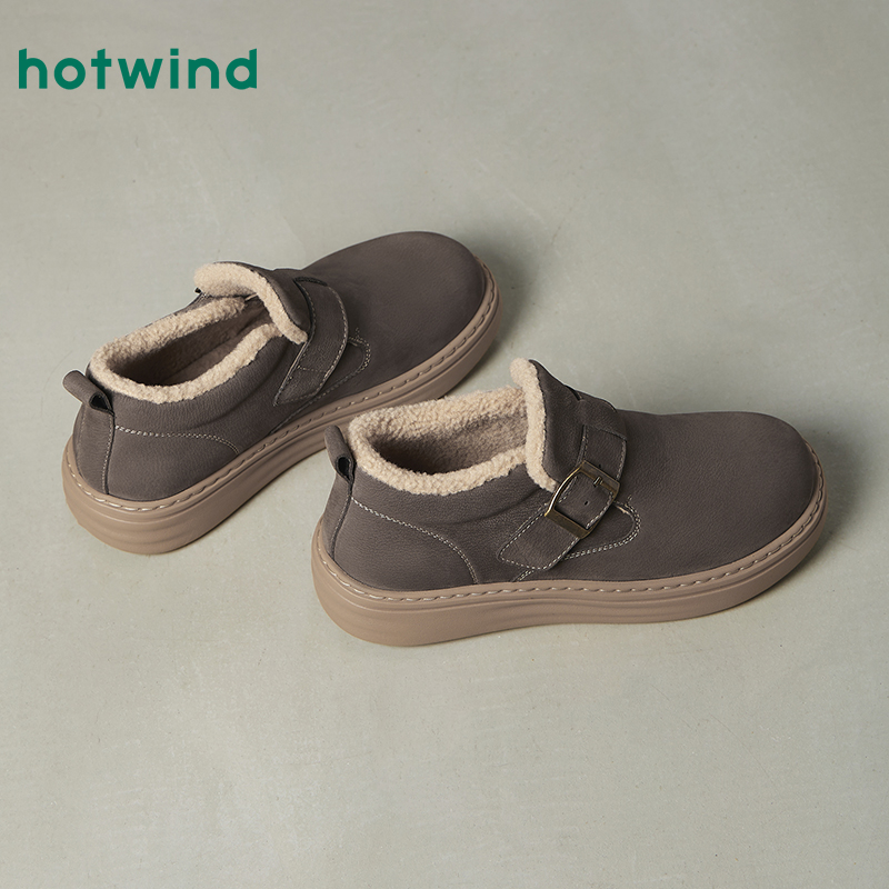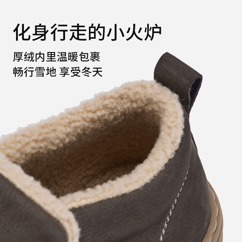 男士 新款 加绒保暖雪地靴复古棕色休闲短靴潮 2025年冬季 热风男鞋