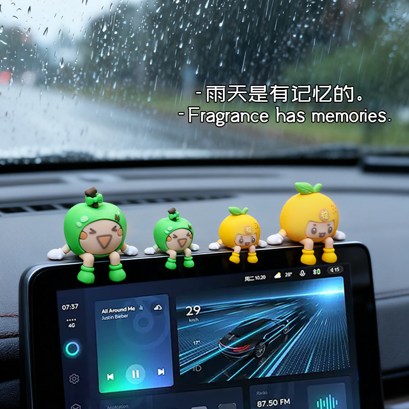 苹果橘子卡通车载摆件治愈系车载中控台汽车装 饰品新车礼物高级感