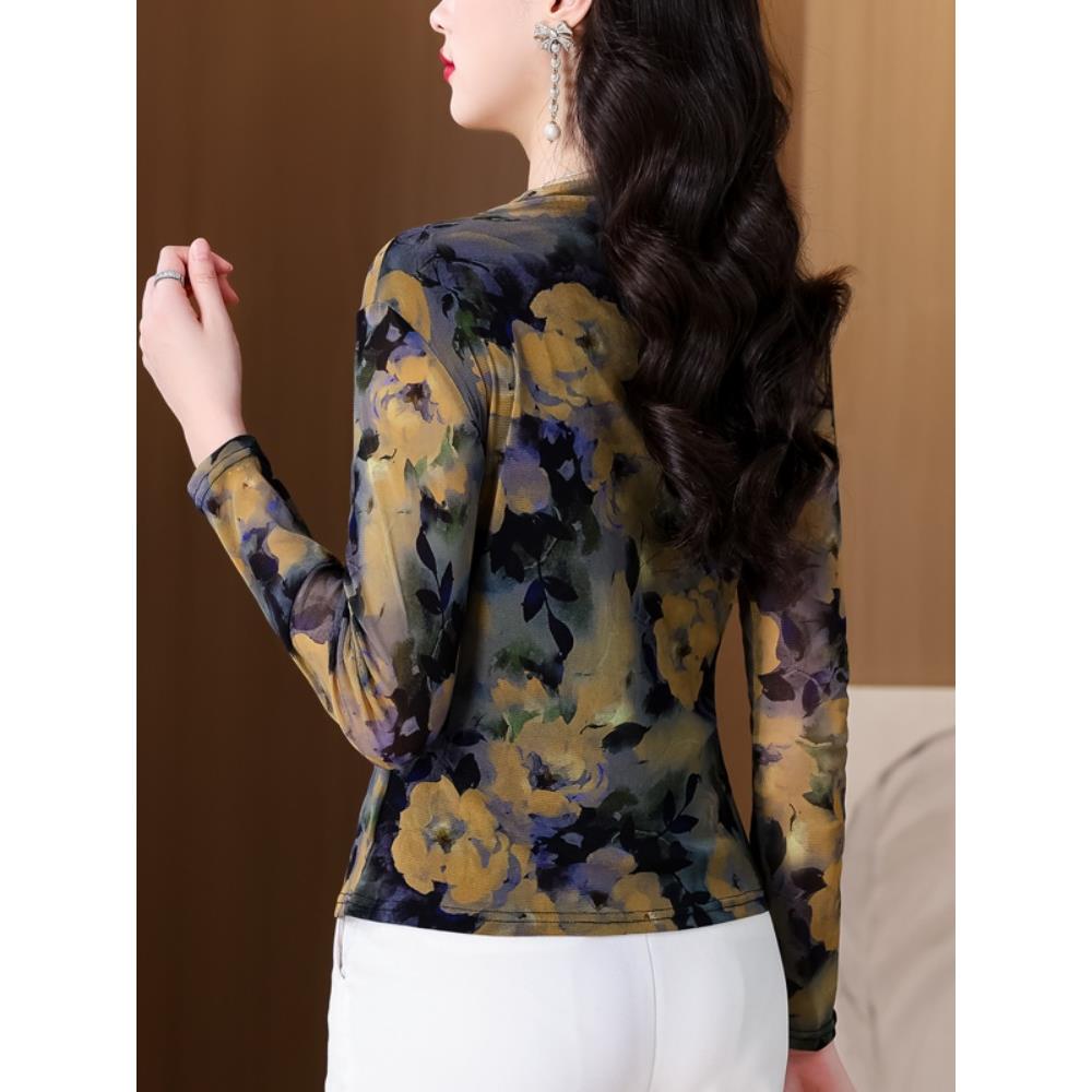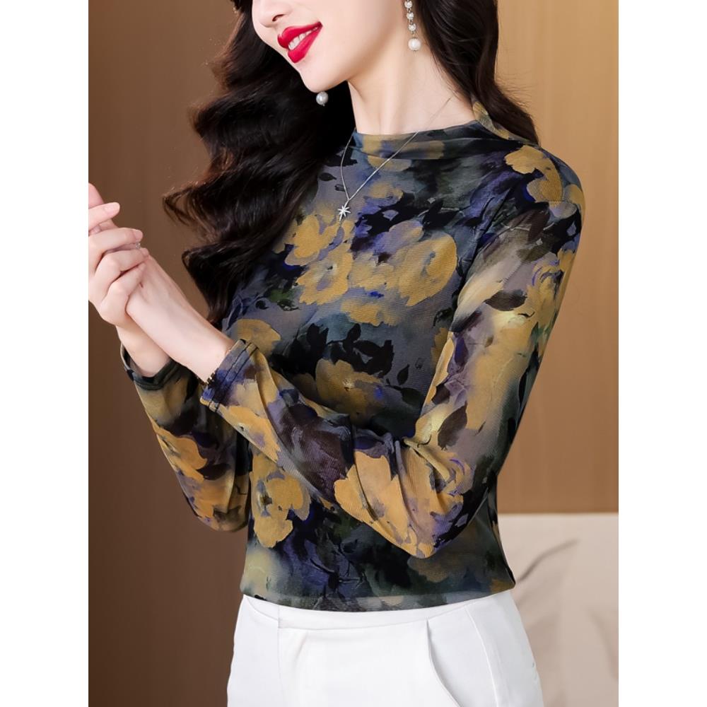 内搭气质显瘦纱衣t恤0923u 新款 秋半高领网纱打底衫 女长袖