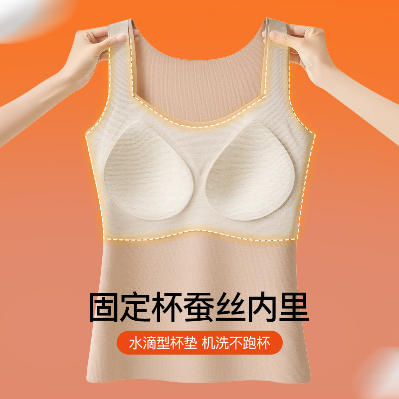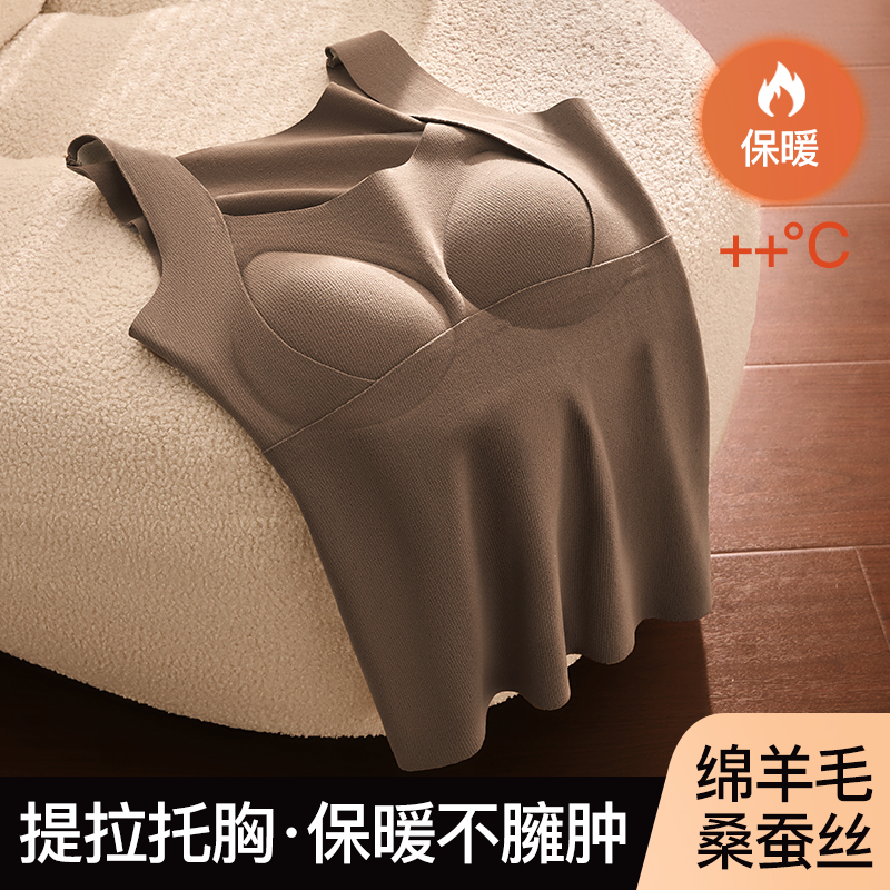 保暖背心女士一体加绒加厚带胸垫发热内衣羊毛蚕丝打底内搭秋冬款