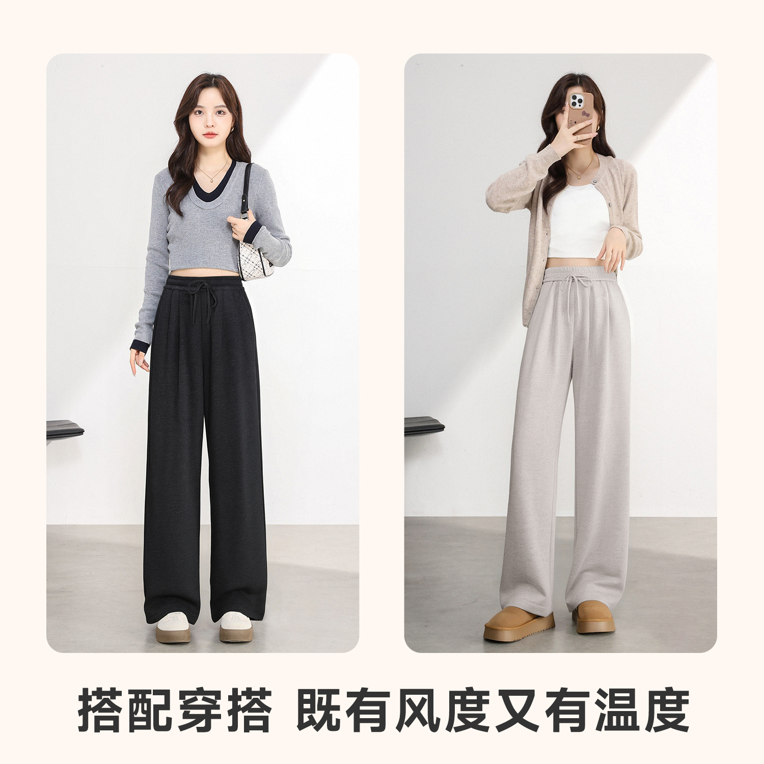 高级宽松bf慵懒垂感直筒加绒休闲阔腿裤 2025新款 子女春秋季 糯米裤