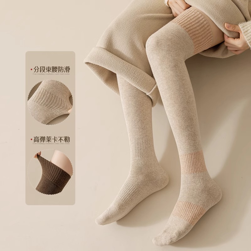 过膝袜子女秋冬款 纯棉纱线长筒袜加长保暖高筒防滑护膝大腿袜春秋
