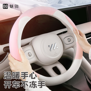 简约轻奢网红汽车方向盘套女冬季 紫色毛绒防滑保暖车载通用车把套