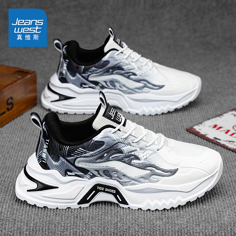 潮牌运动休闲增高减震青少年跑步老爹徒步旅游潮鞋 真维斯男鞋 秋季