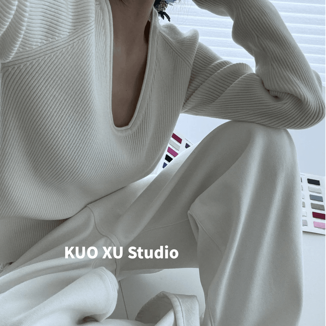 套装 巨好看 上衣垂感百搭直筒阔腿裤 针织衫 早秋一整套深V领长袖