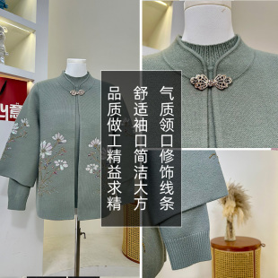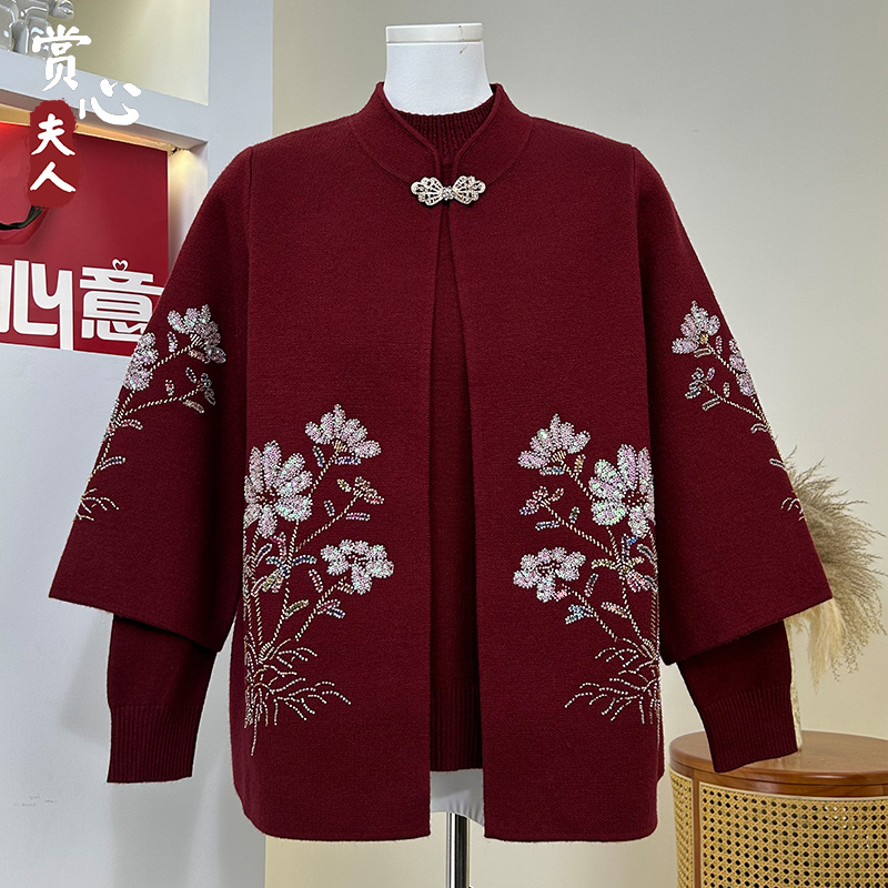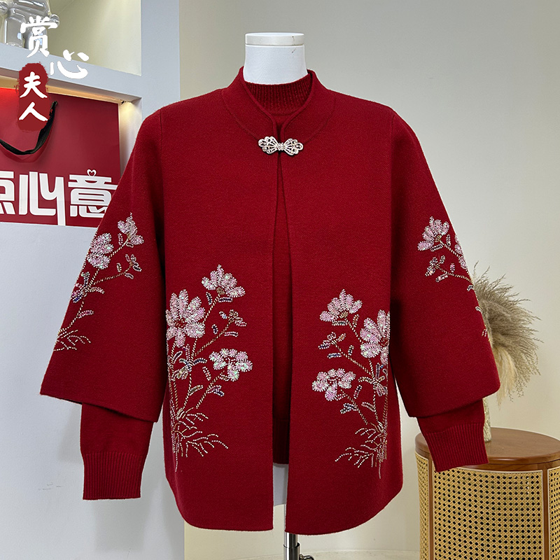 中老年毛衣两件套装 针织开衫 喜婆婆结婚宴外套 女秋装 妈妈洋气唐装
