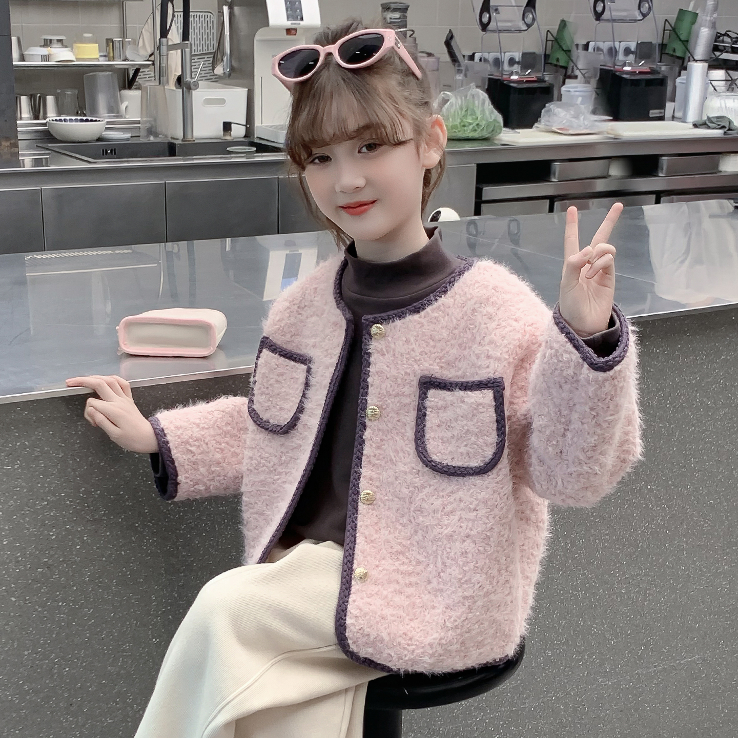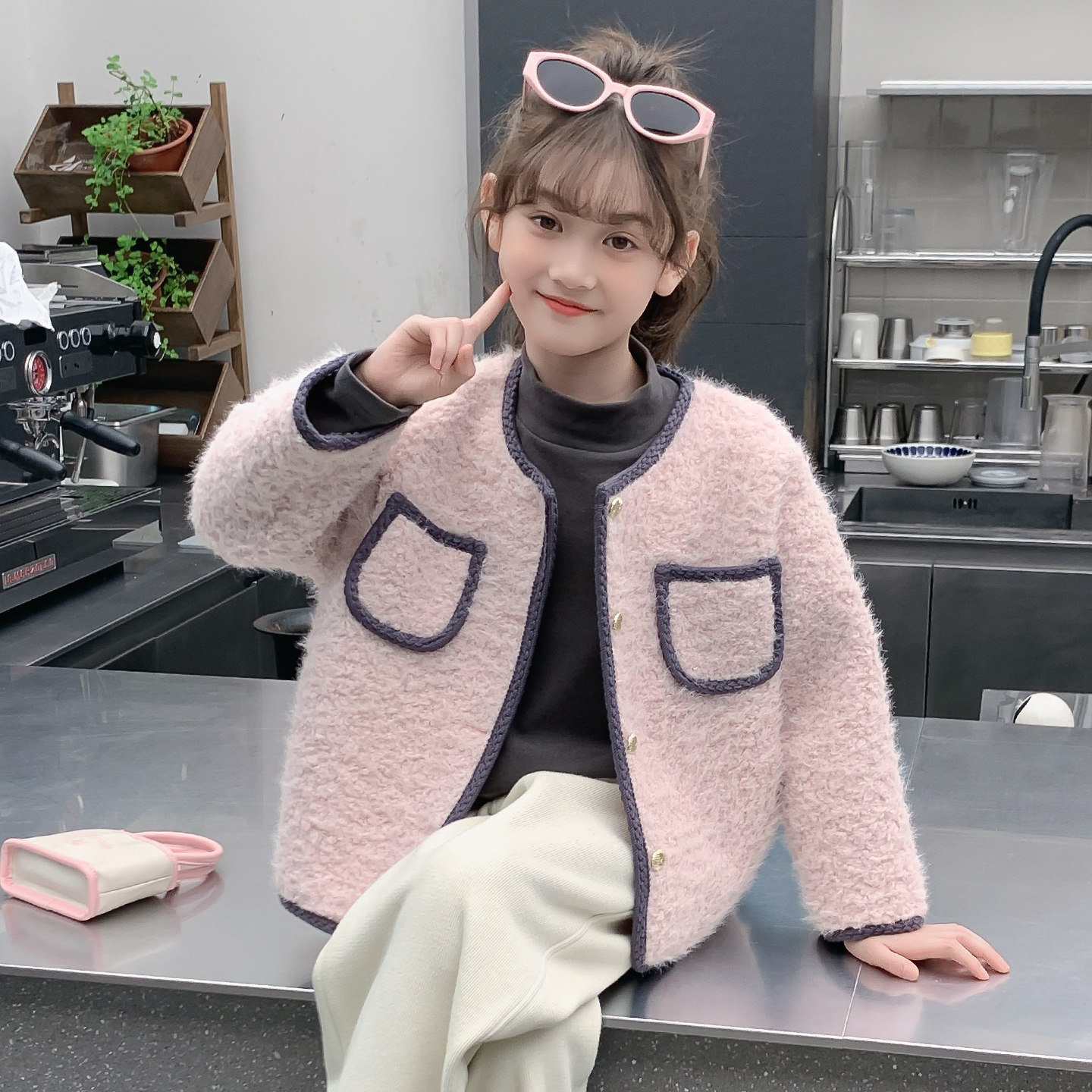 女童秋冬外套2025新款 潮 儿童网红洋气小香风加厚毛呢大衣女孩冬装