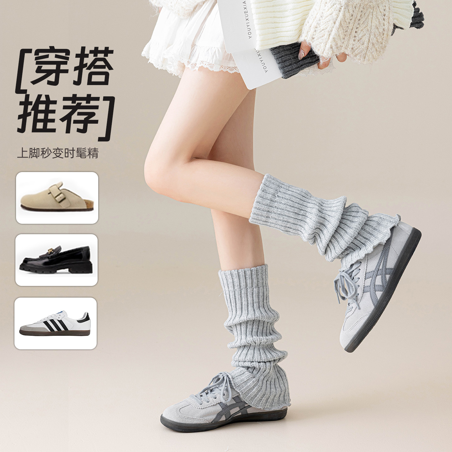 压力小腿袜女半腿jk风中筒堆堆袜配靴子长靴小皮鞋 灰色春秋长筒袜