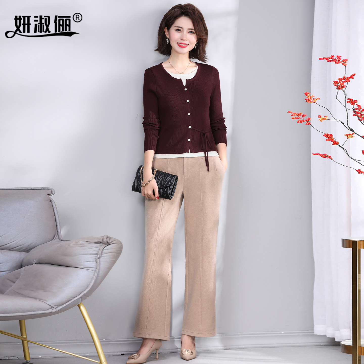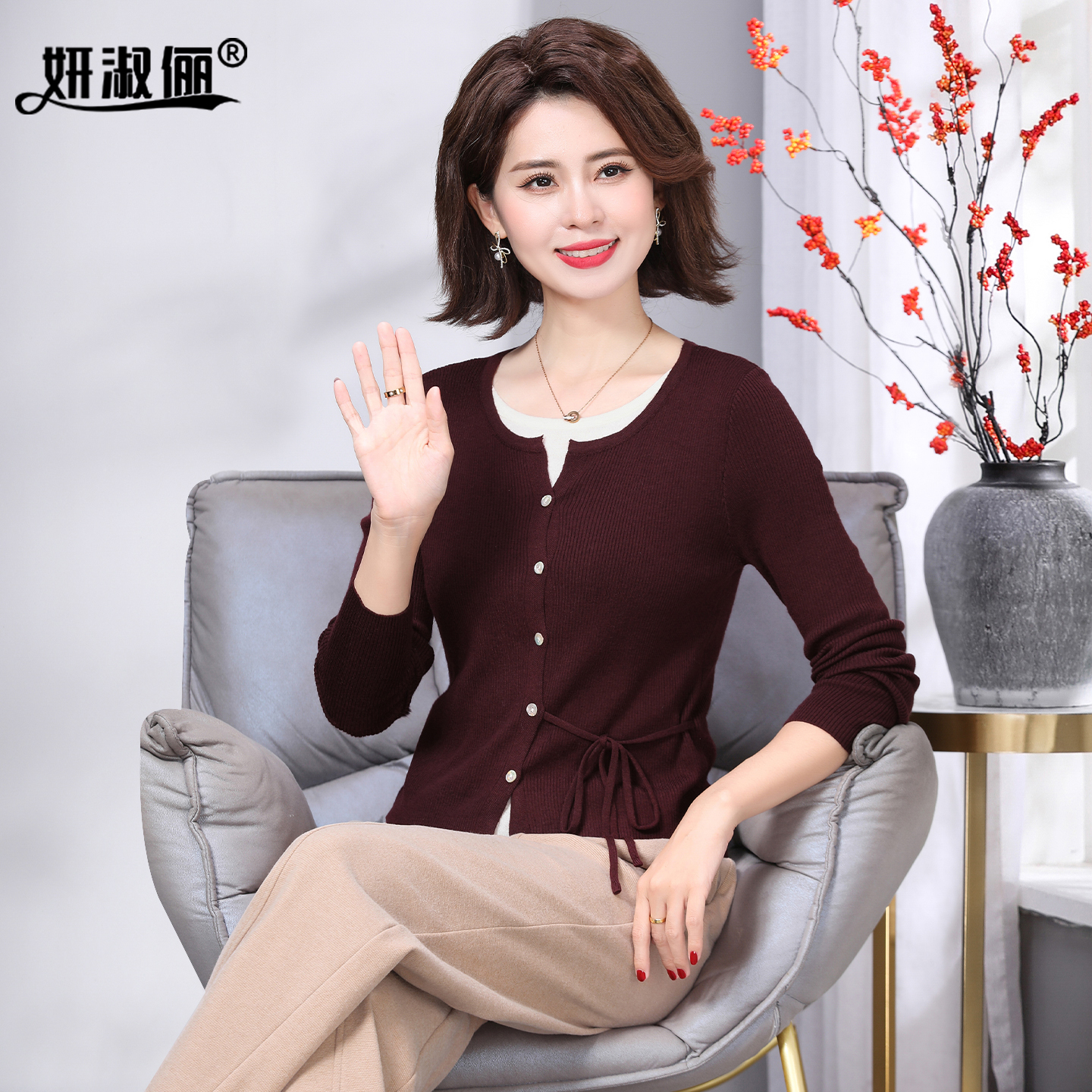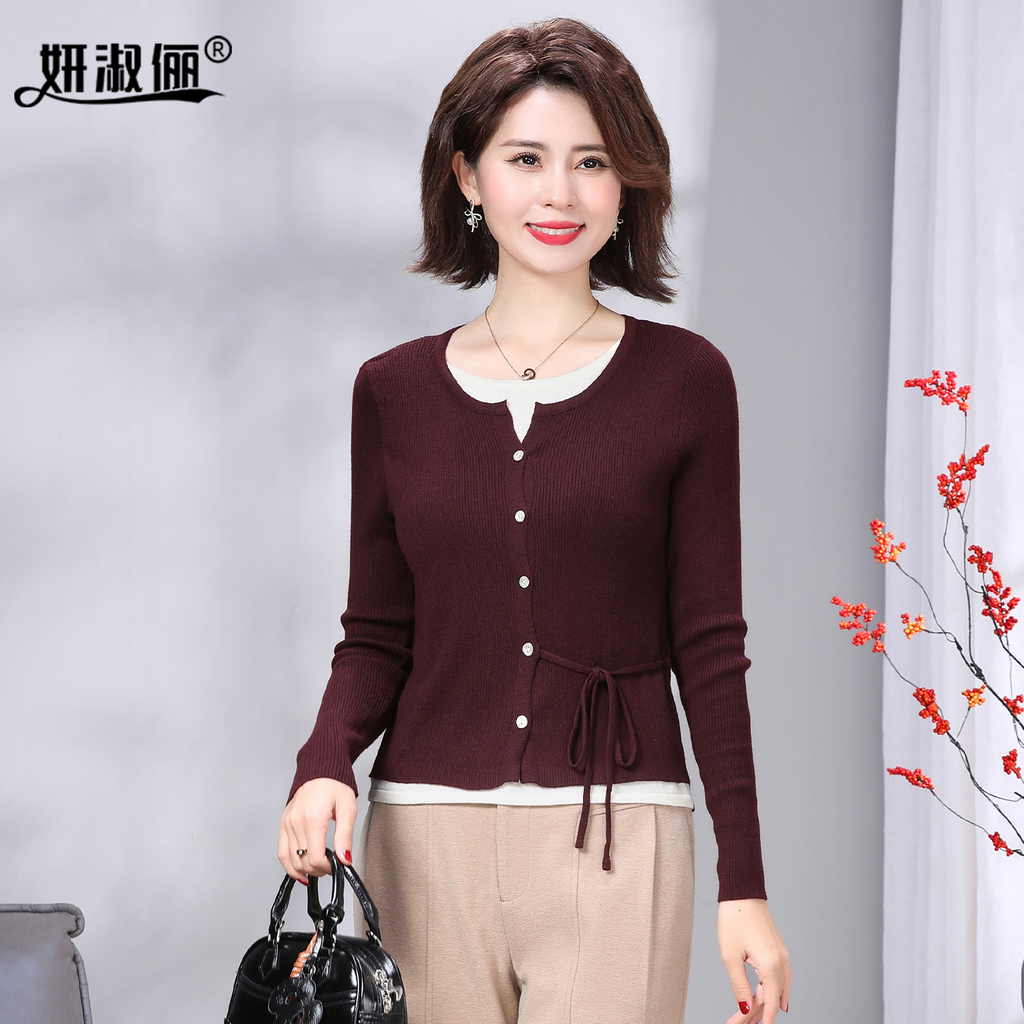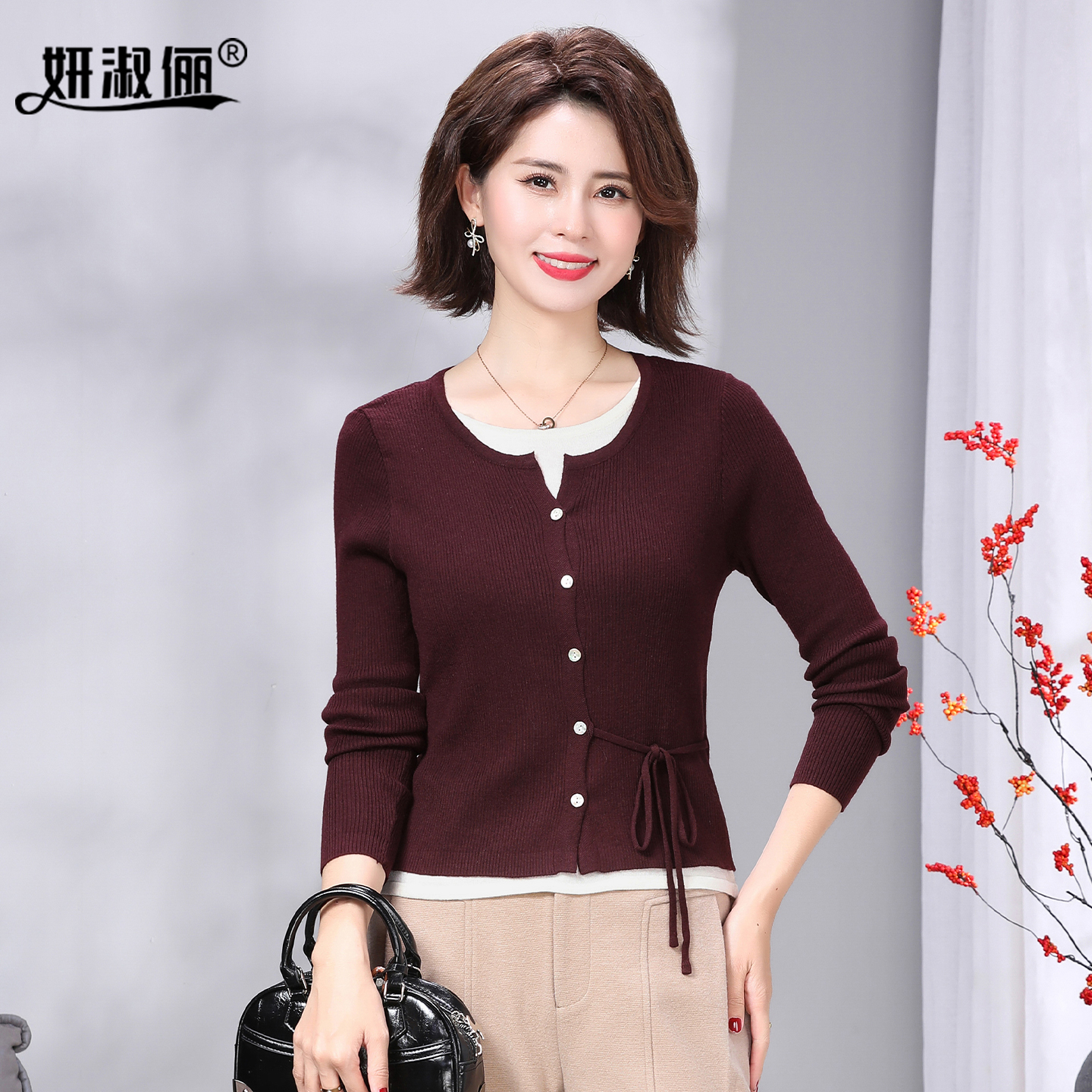 减龄气质羊毛半身裙套装 毛衣秋新款 假两件开衫 年轻妈妈洋气针织衫