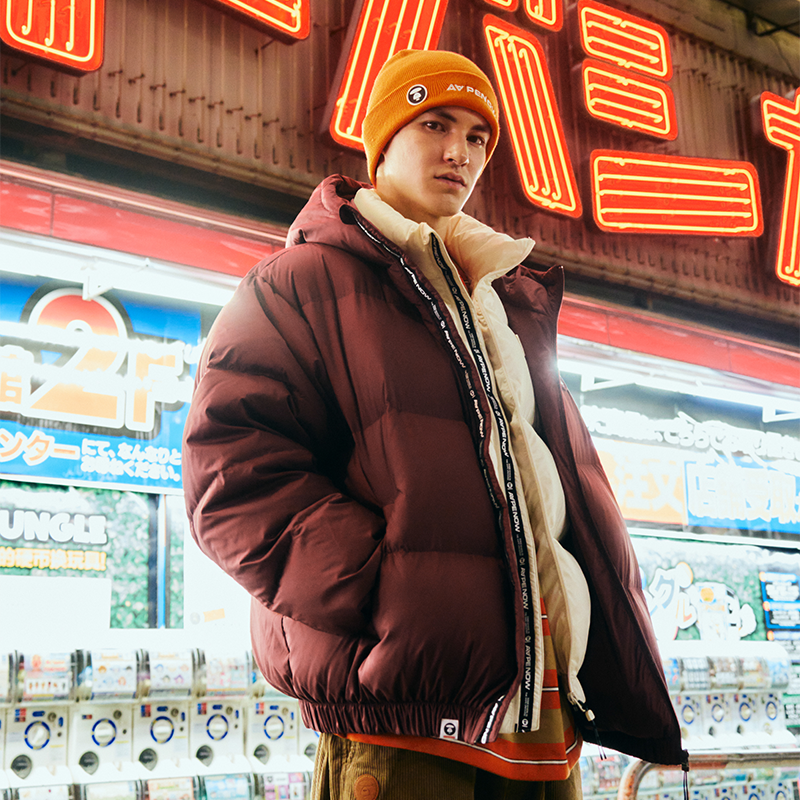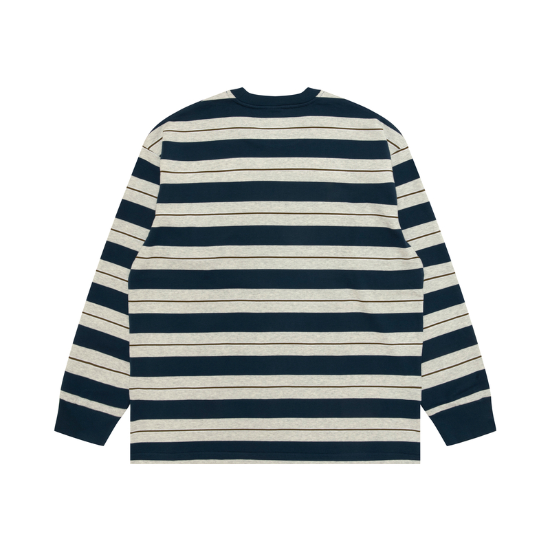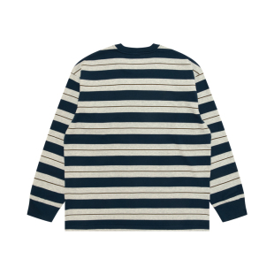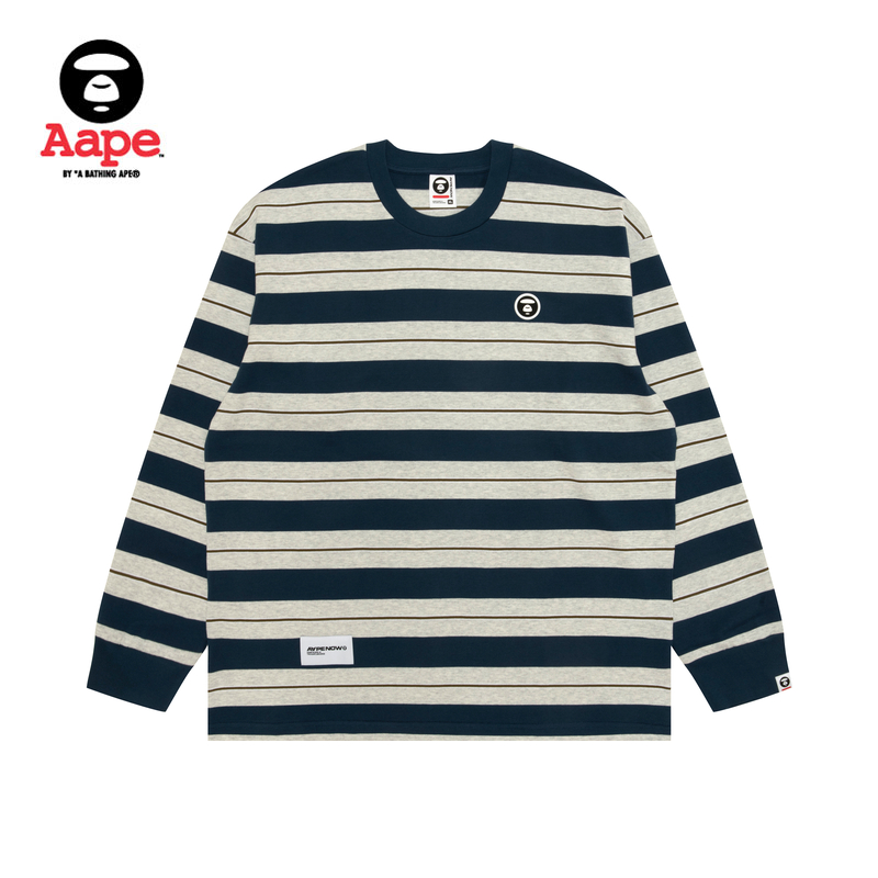Aape旗舰店男装 T恤1718XXP 秋冬小标徽章复古条纹休闲潮流长袖