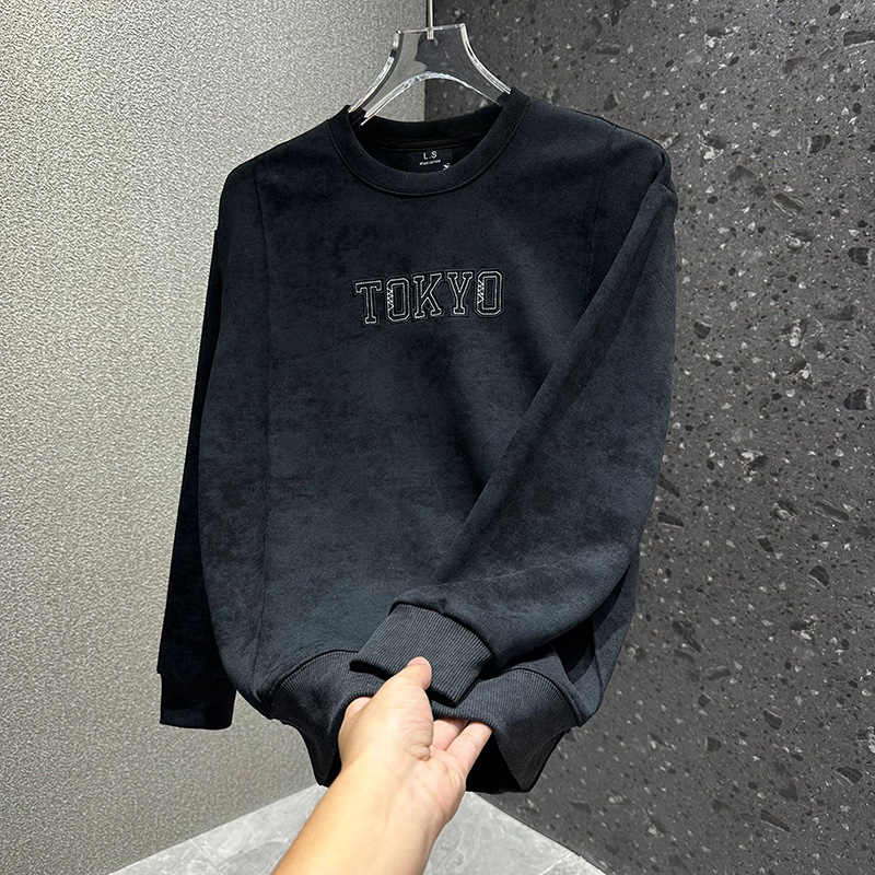 圆领轻奢复古T恤 卫衣2025新款 扎染设计潮流网红拼接圆领男士 爆款