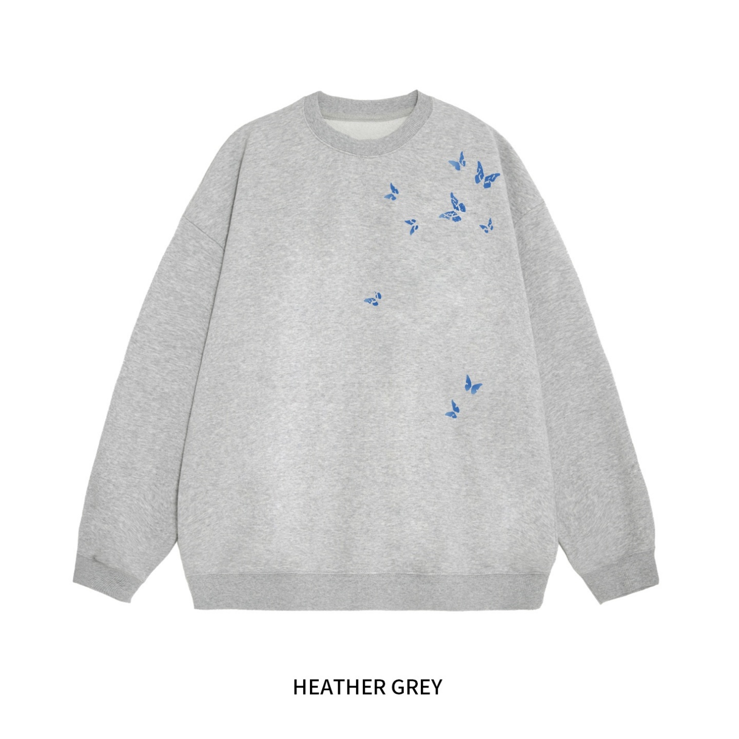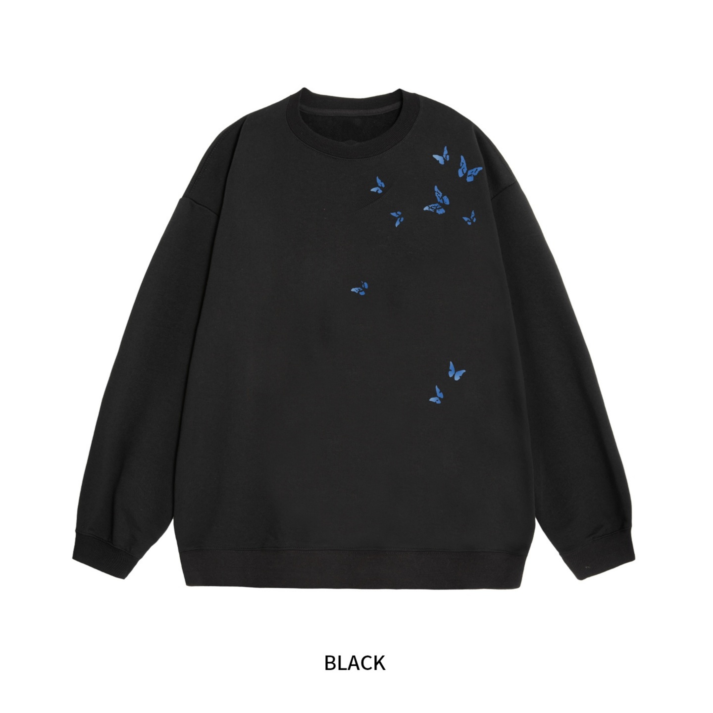 美式 薄款 慵懒chic上衣 小蝴蝶长袖 黑色圆领重磅卫衣女早秋2025新款