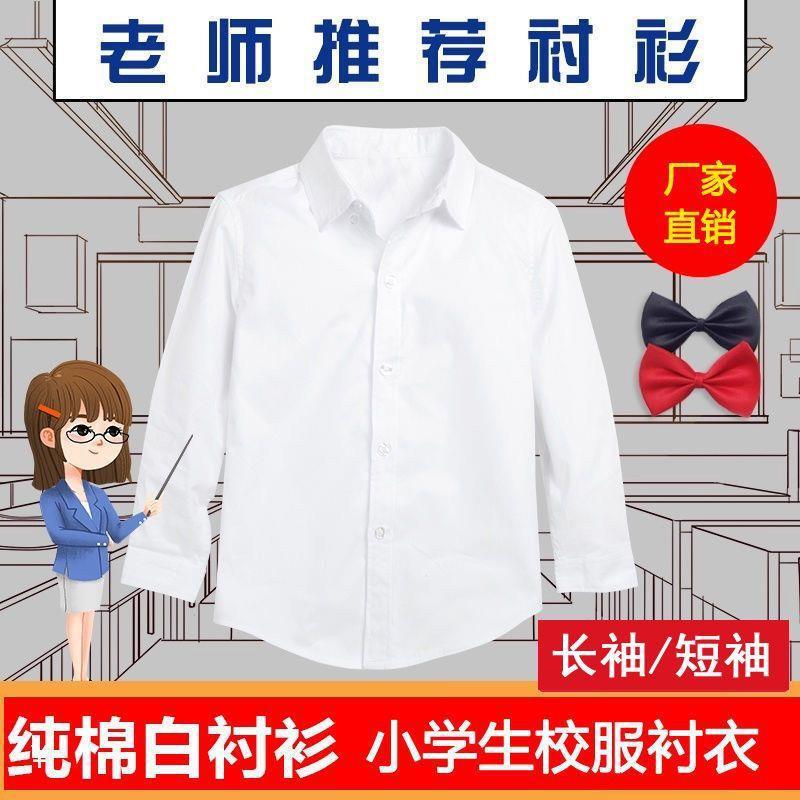 全棉表演出中小学生校服 纯棉白色衬衣短袖 儿童白衬衫 男童女童长袖