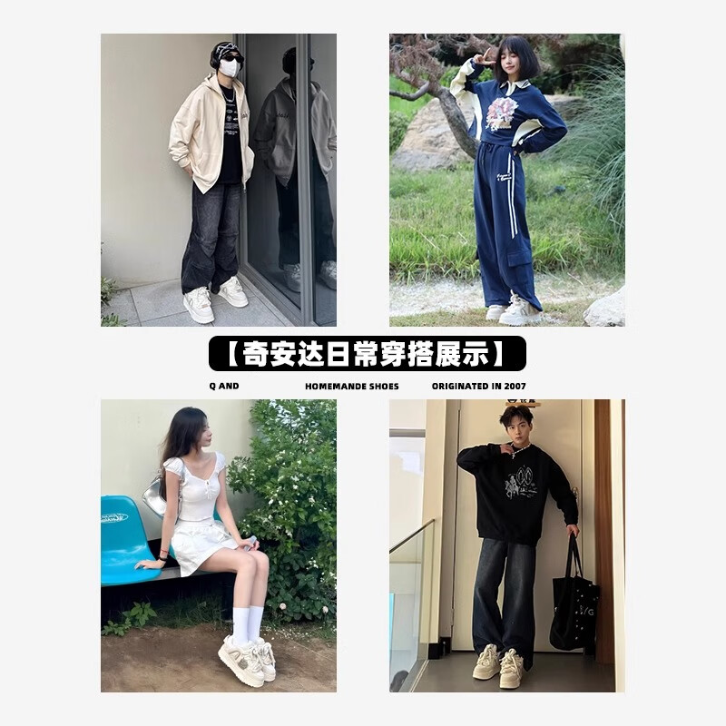 潮鞋 奇安达 百搭厚底增高学生运动休闲板鞋 面包女鞋 女 明星同款