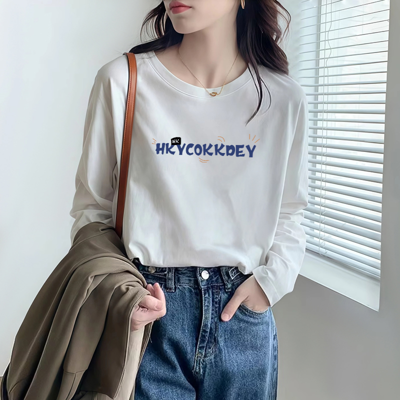 百搭薄款 2025早秋新款 时尚 圆领T恤女装 减龄宽松上衣 正肩长袖