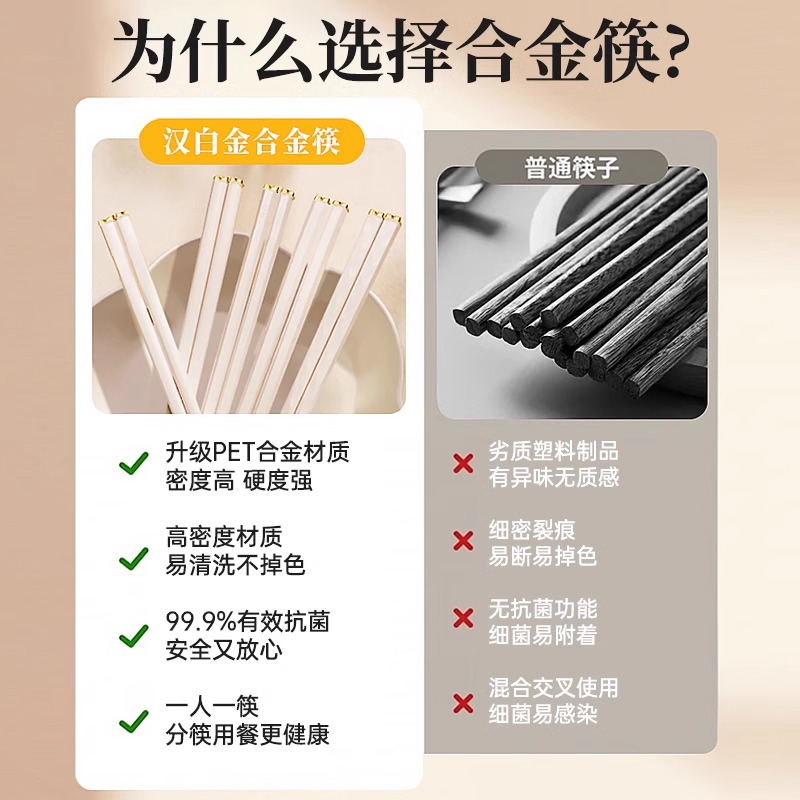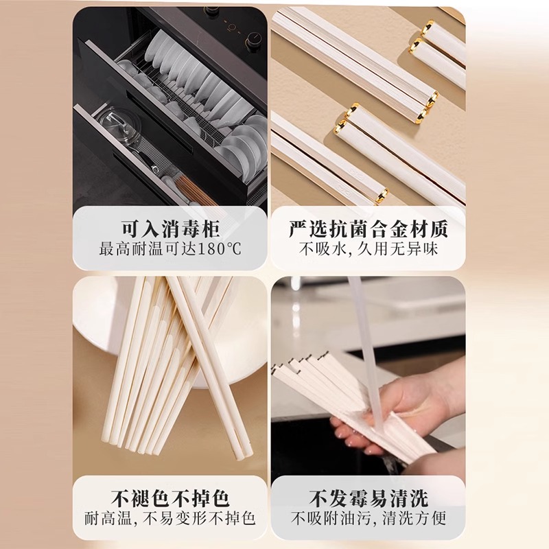宝选合金筷子家用高档抗菌防霉耐高温一人一筷防滑家庭专用分餐筷