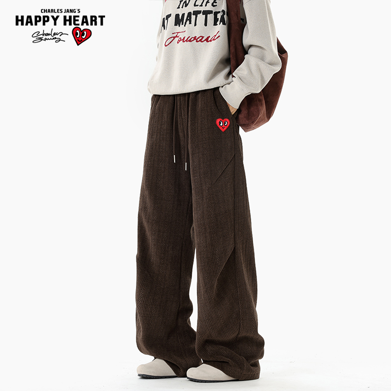 宽松情侣直筒百搭潮流长裤 查尔斯桃心美式 新款 子男秋季 打褶休闲裤