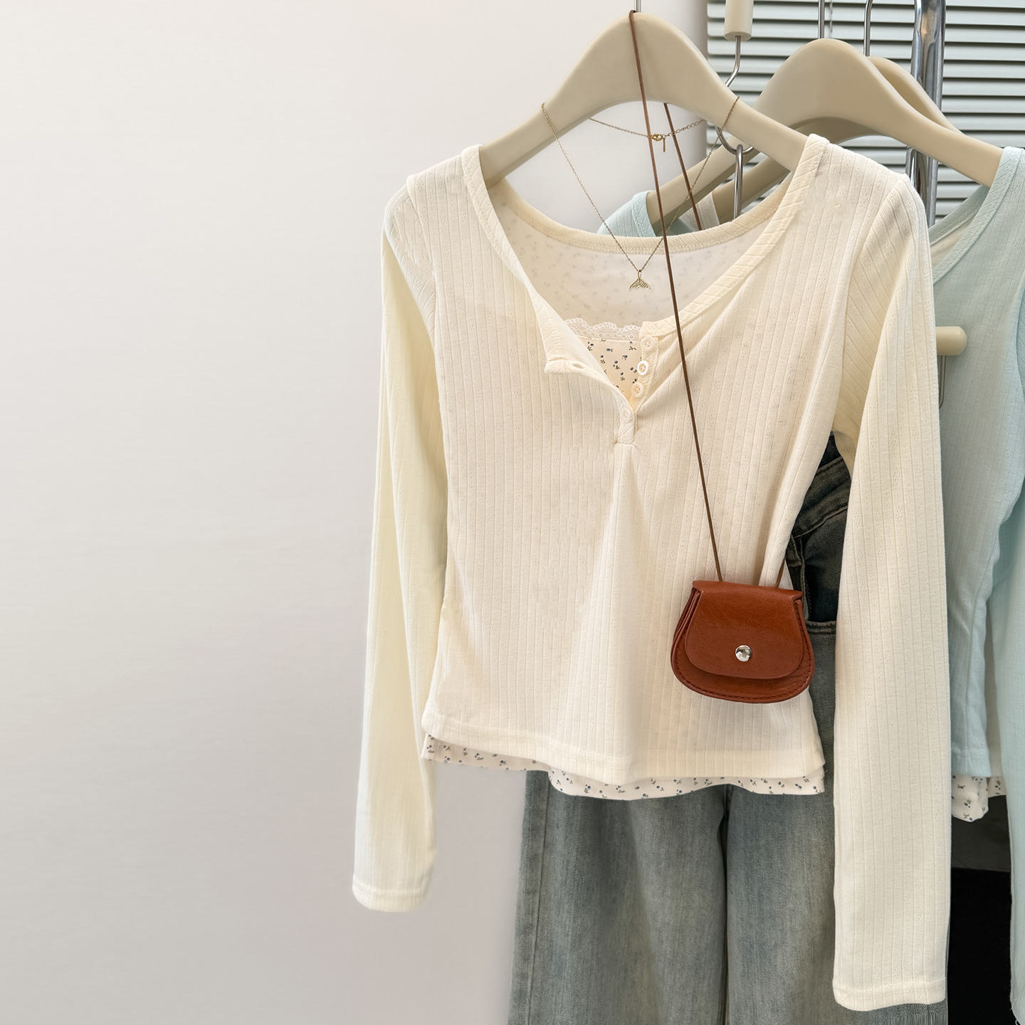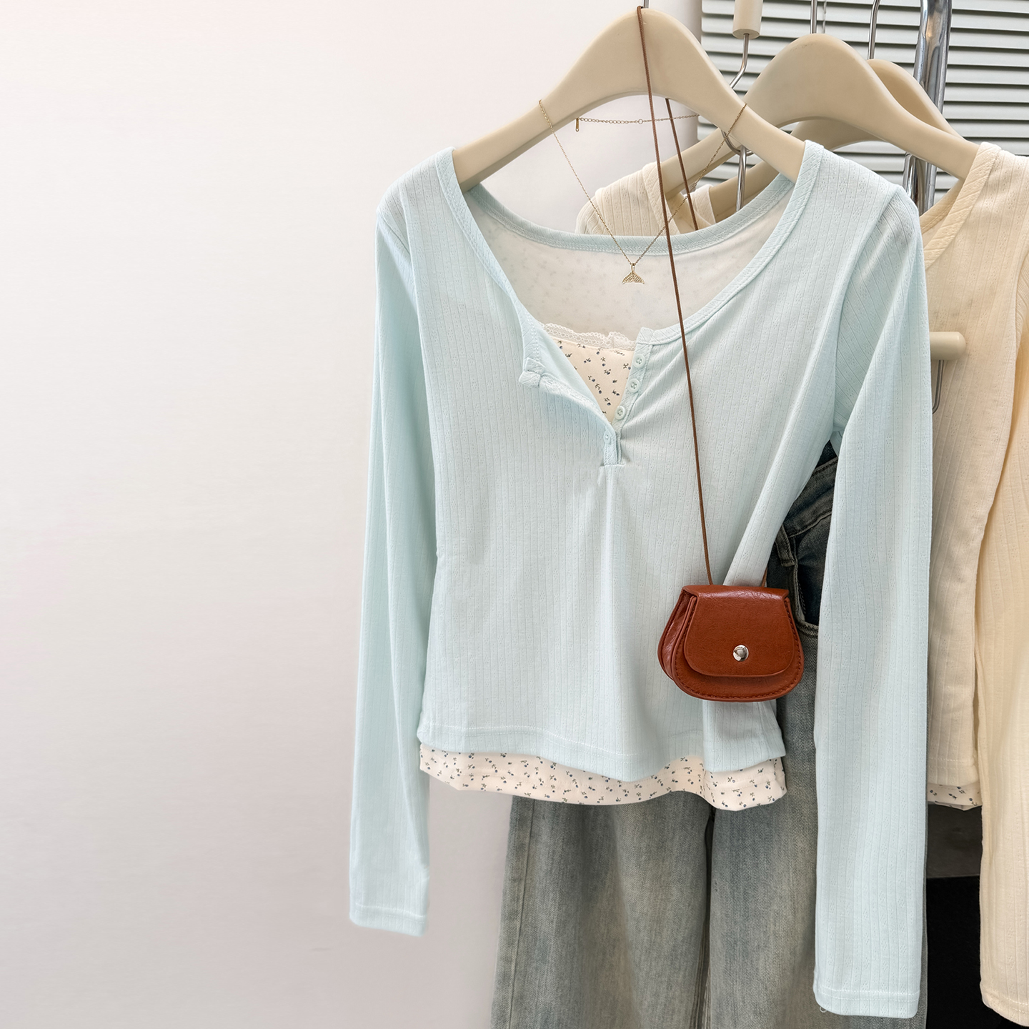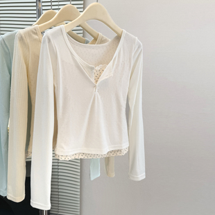 打底衫 韩系chic甜辣假两件长袖 内搭短款 修身 上衣潮 T恤女春秋韩版