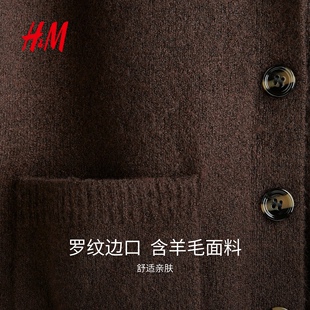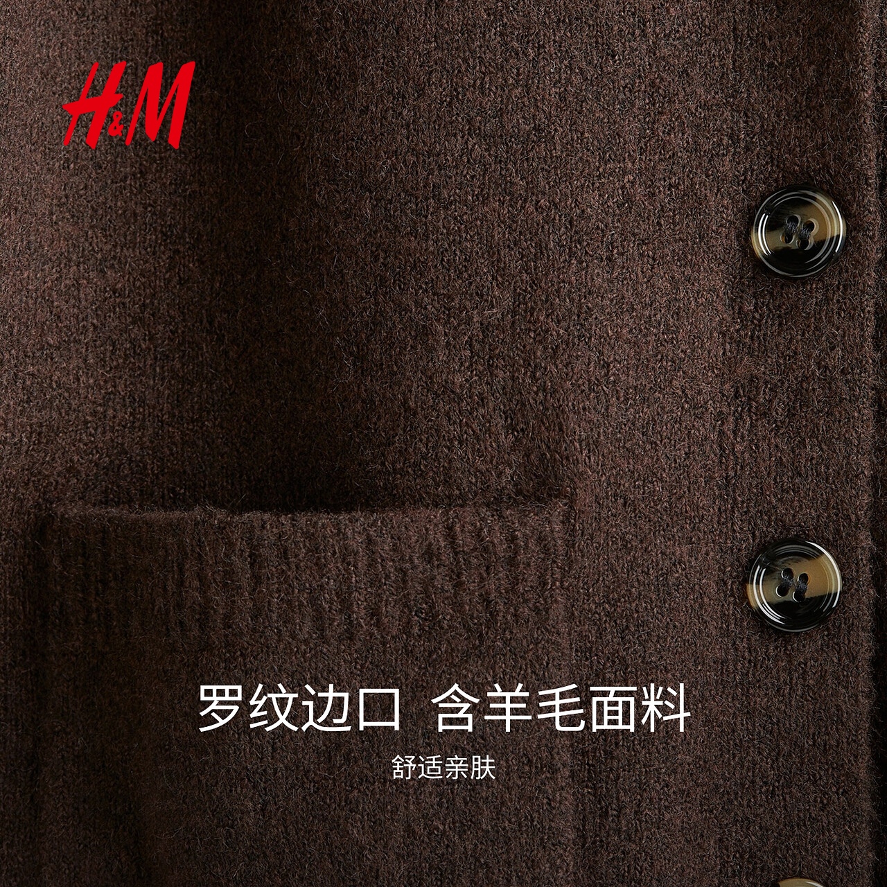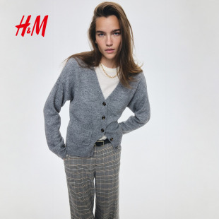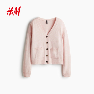 毛针织衫 v领开衫 2025年秋季 宽松落肩长袖 外套1301240 新款 HM女装