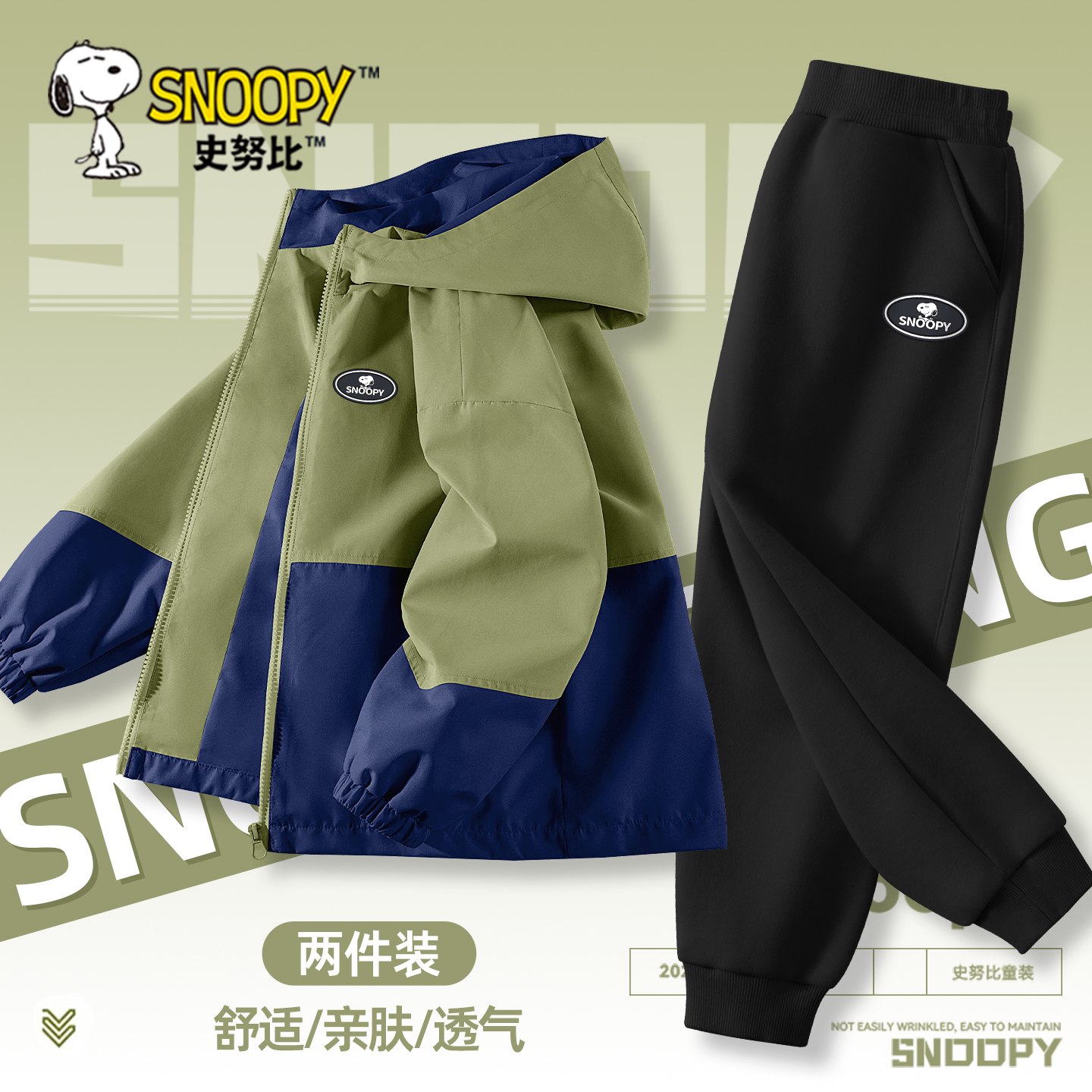 史努比男童秋冬套装 冲锋衣夹克男孩户外衣服儿童加绒外套 2025新款