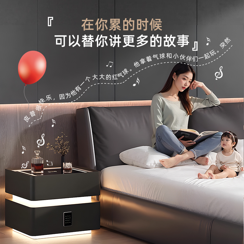2025爆款 智能实木床头柜保险箱一体家用卧室边柜高级感轻奢储物柜