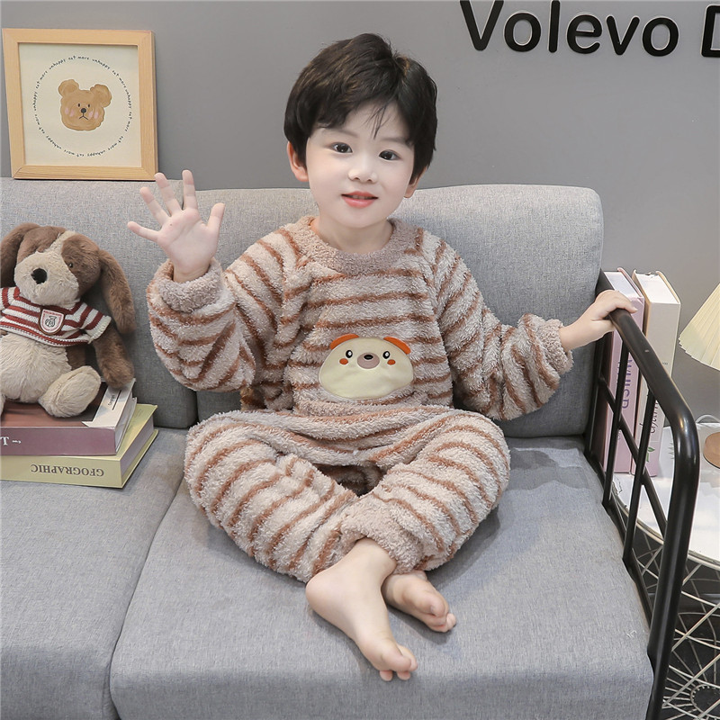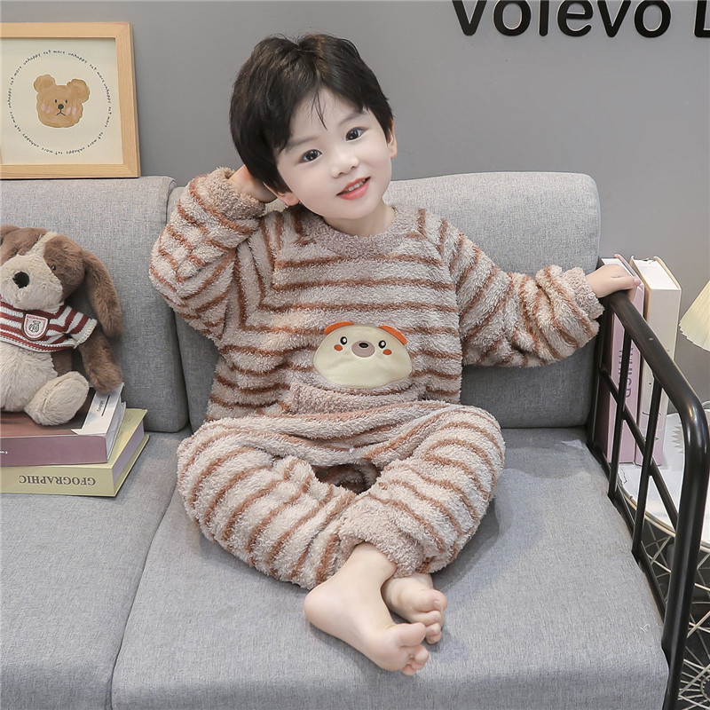 男童连体睡衣秋冬款 防着凉宝宝连身睡袋 条纹毛毛衣儿童珊瑚绒冬季