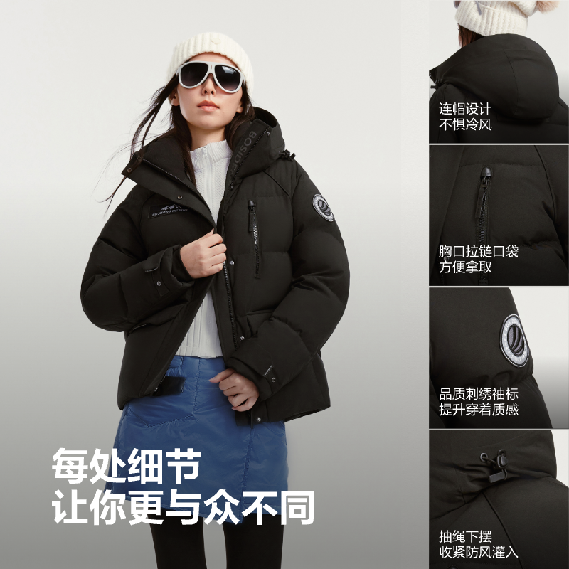 宽松三防外套黑色羽绒衣 2024冬新款 陈都灵同款 森马羽绒服女长款