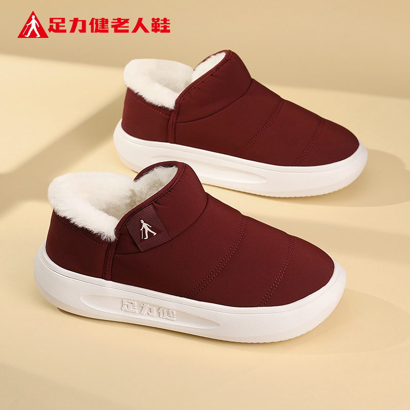 加绒棉鞋 中年妈妈秋冬季 加厚保暖雪地靴女 旗舰店正品 足力健老人鞋