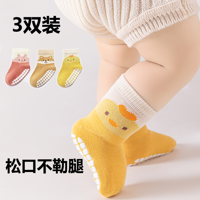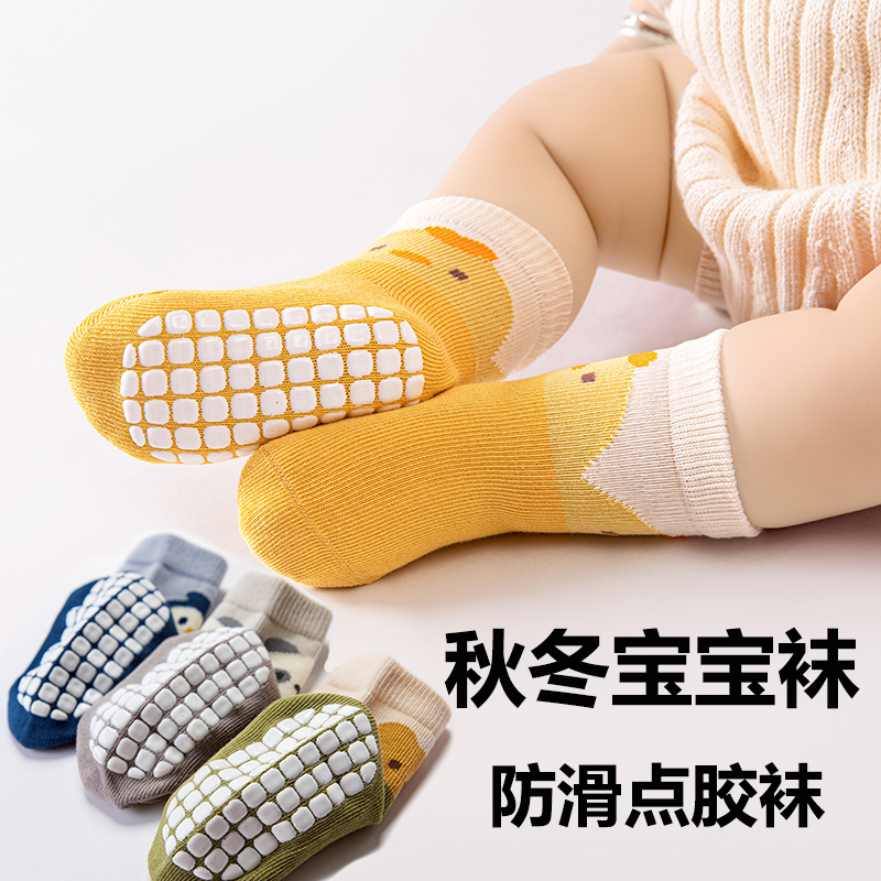 斯维因室内宝宝地板袜秋冬季 纯棉加厚保暖婴儿袜子防滑隔凉不勒