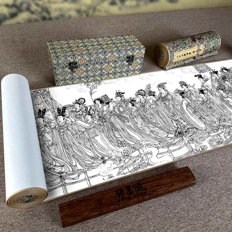 永乐宫壁画线描稿 散页美术学院中国画教学临摹范本白描底稿教学画稿工笔画技法临摹教材线描笔画国画技法美术天津人美 4开袋装