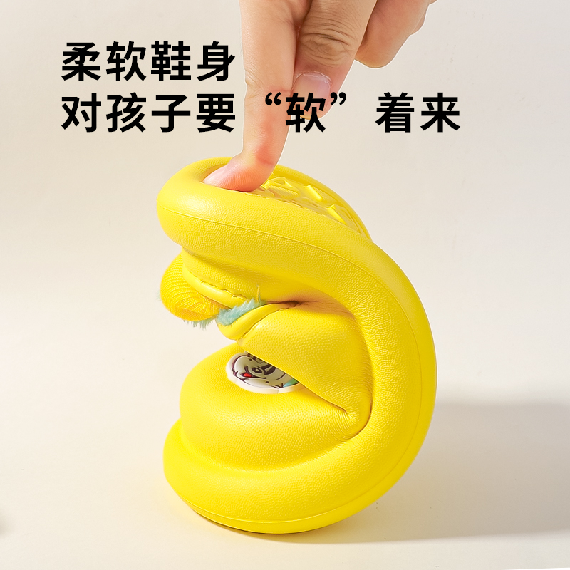 巴布豆儿童棉拖鞋 秋冬男童女童防滑保暖加绒室内家居防水宝宝拖鞋