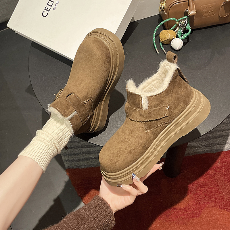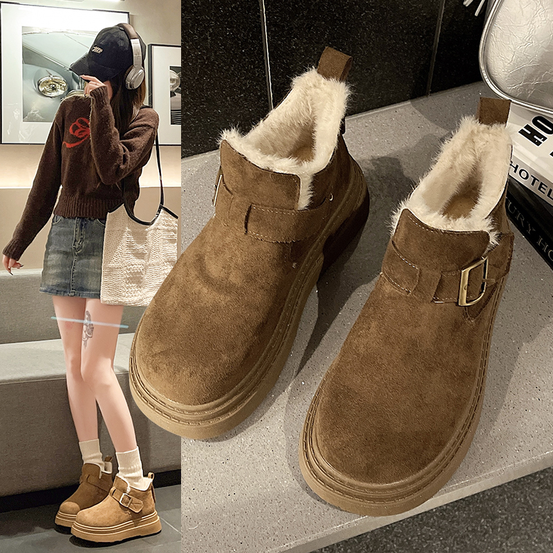 皮毛一体雪地靴女2024新款 加绒加厚棉鞋 秋冬 女款 热风圈厚底勃肯鞋