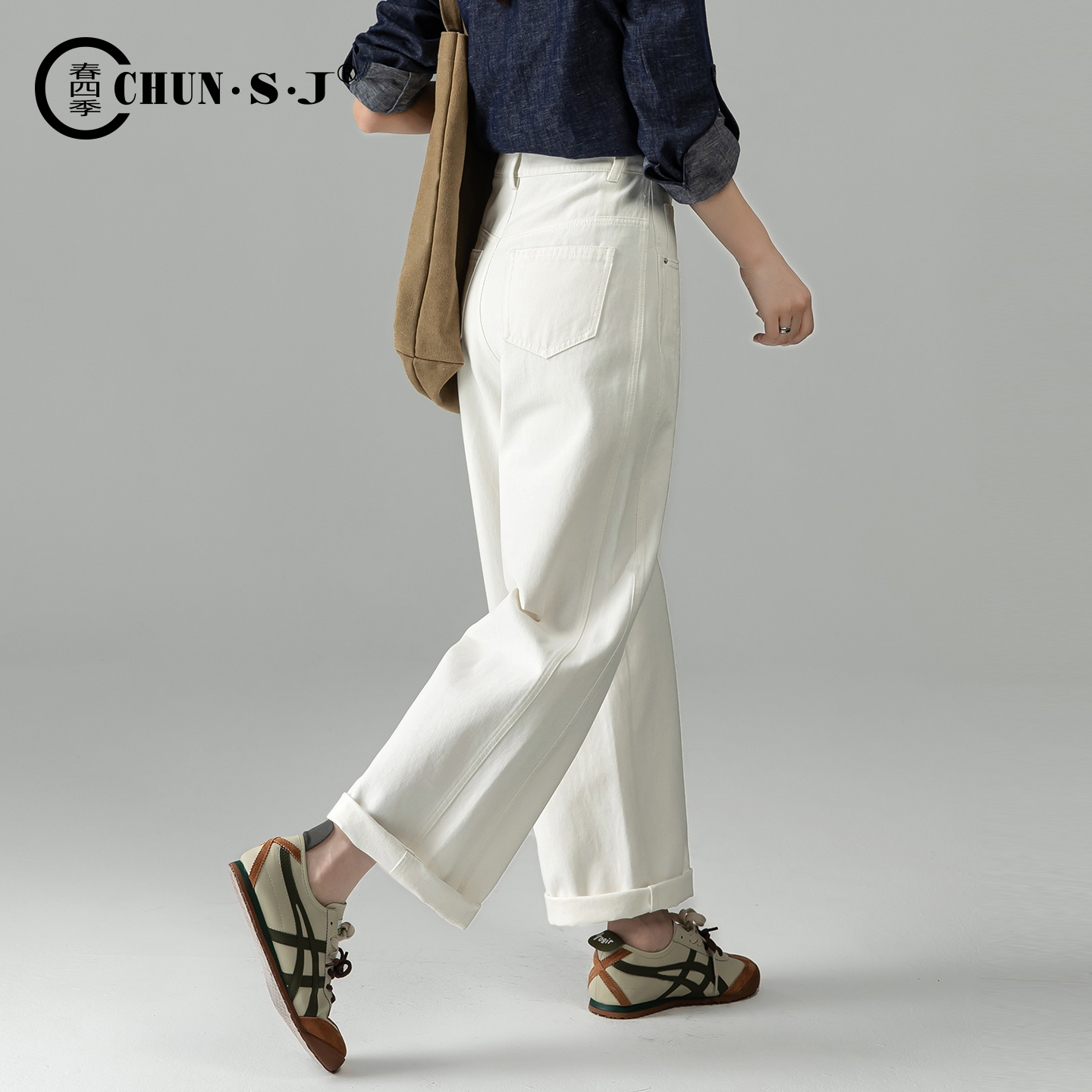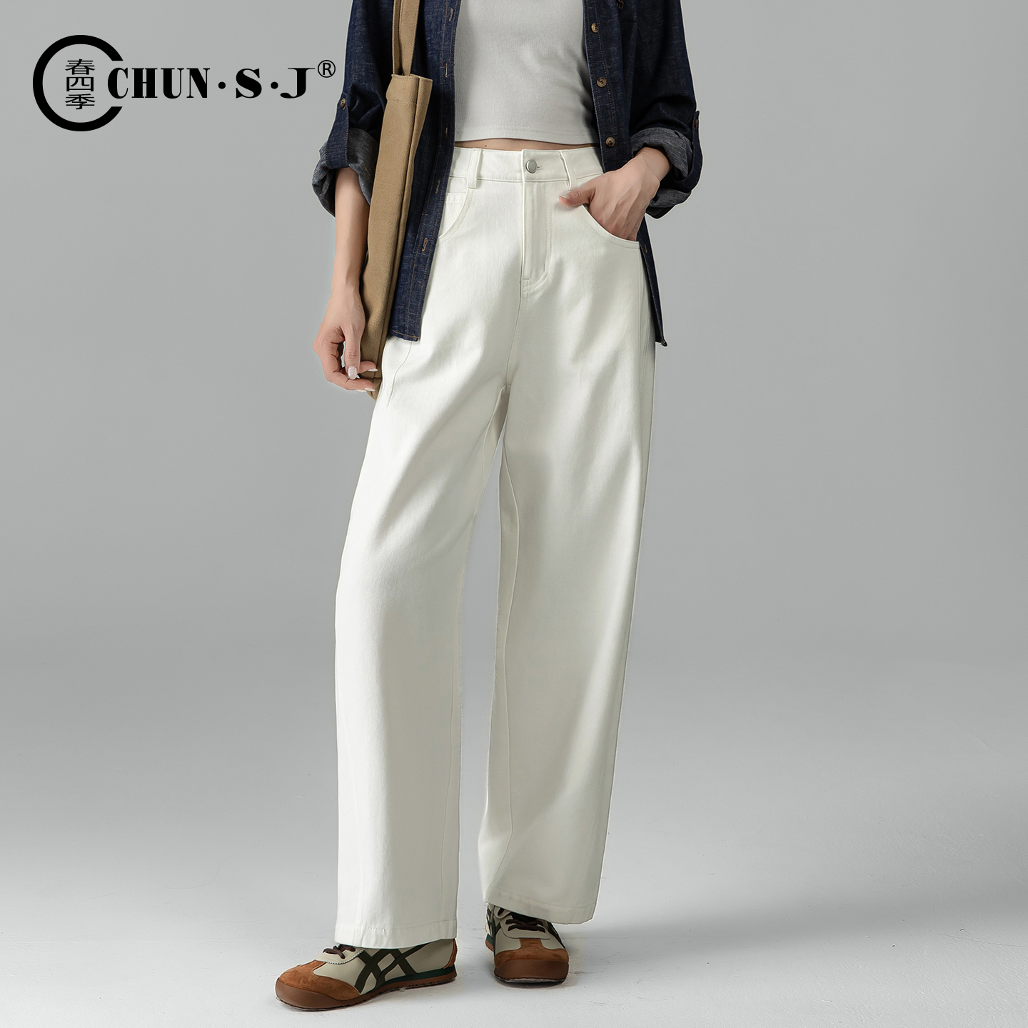 女2025新款 子米白色阔腿裤 秋季 裤 休闲大码 遮肉梨型身材弯刀牛仔裤
