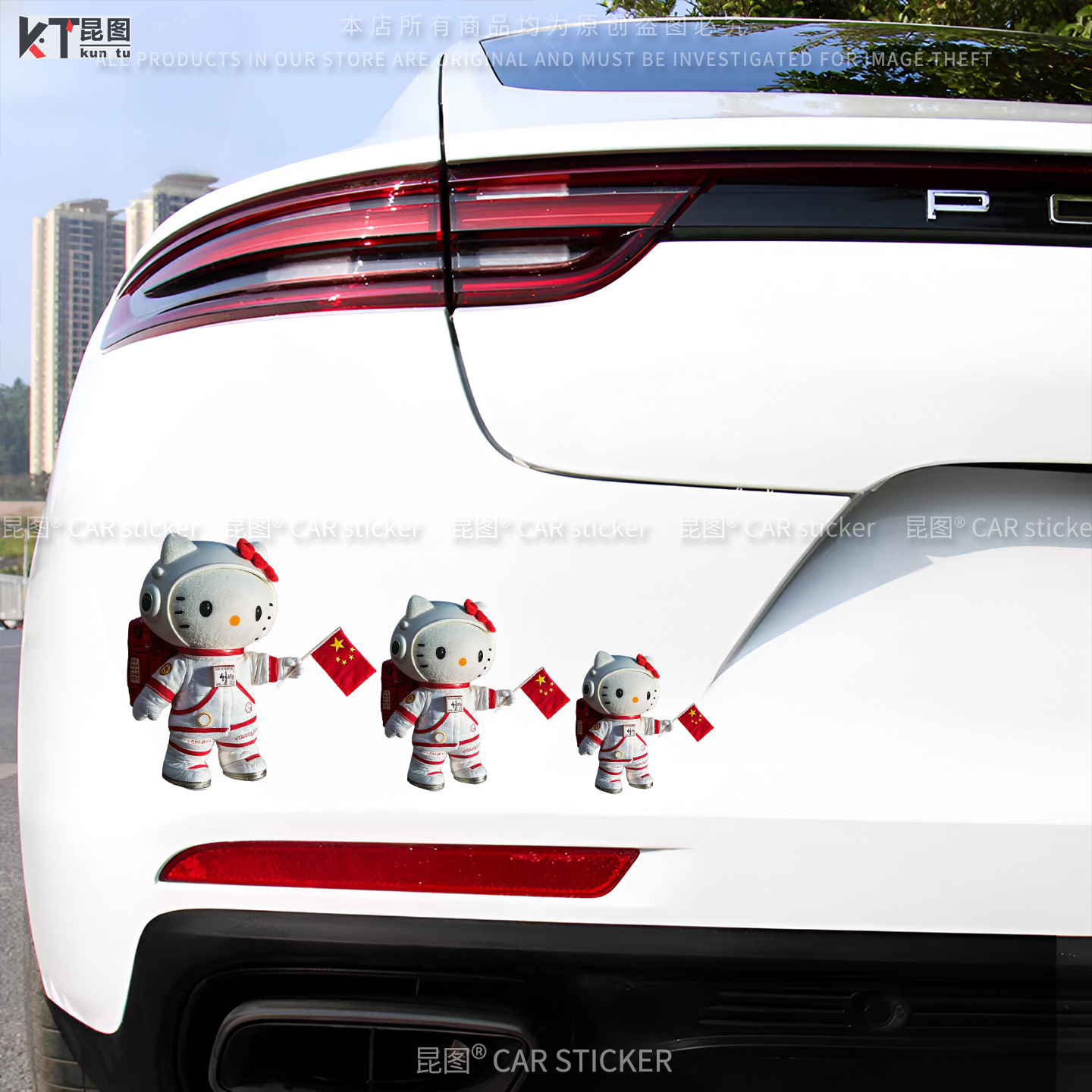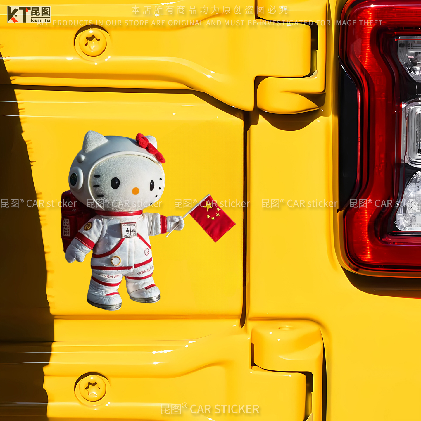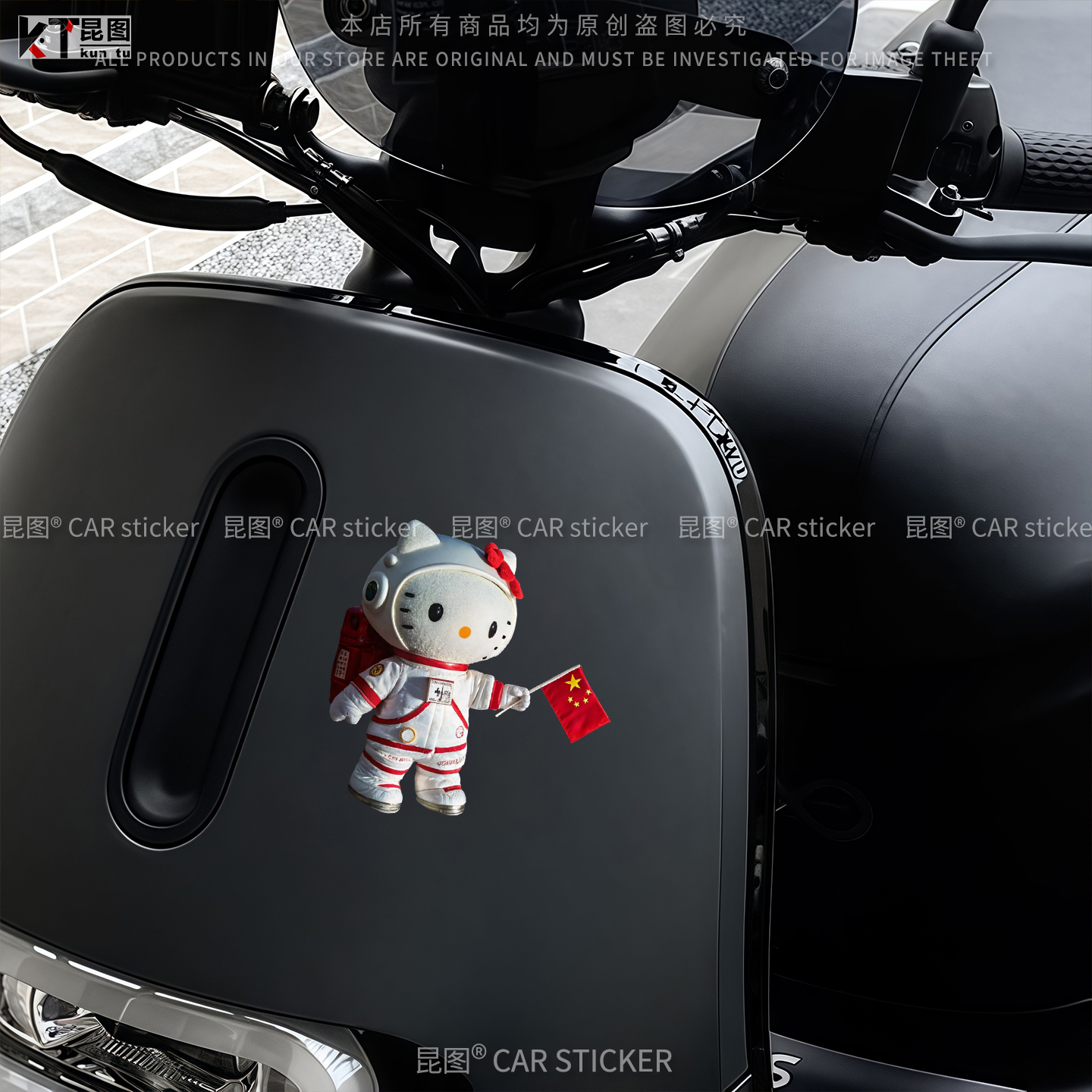 KT猫可爱宇航员汽车贴纸国旗装 饰电动车行李箱笔记本机箱防水贴画