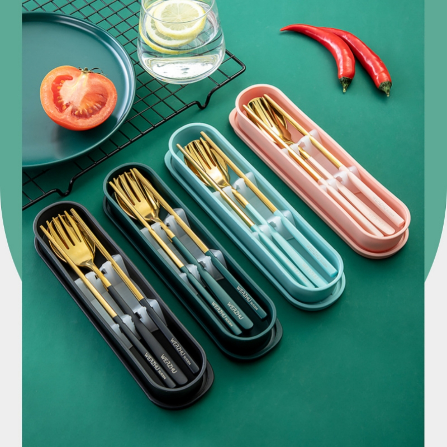 304不锈钢筷子勺子套装 一人用便携餐具盒上班族小学生外带收纳盒